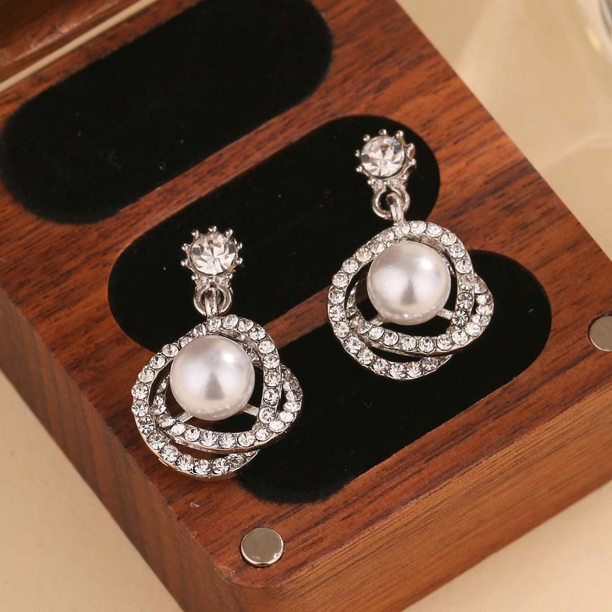 Wholesale Light luxury diamond coil-wrapped pearl earrings