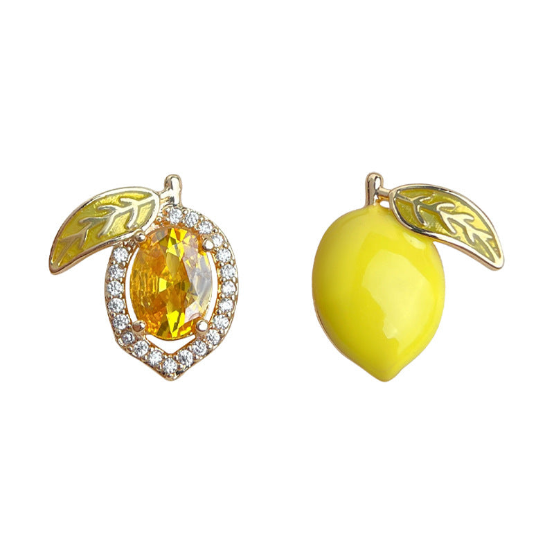 - 6121 silver needle asymmetric lemon stud earrings