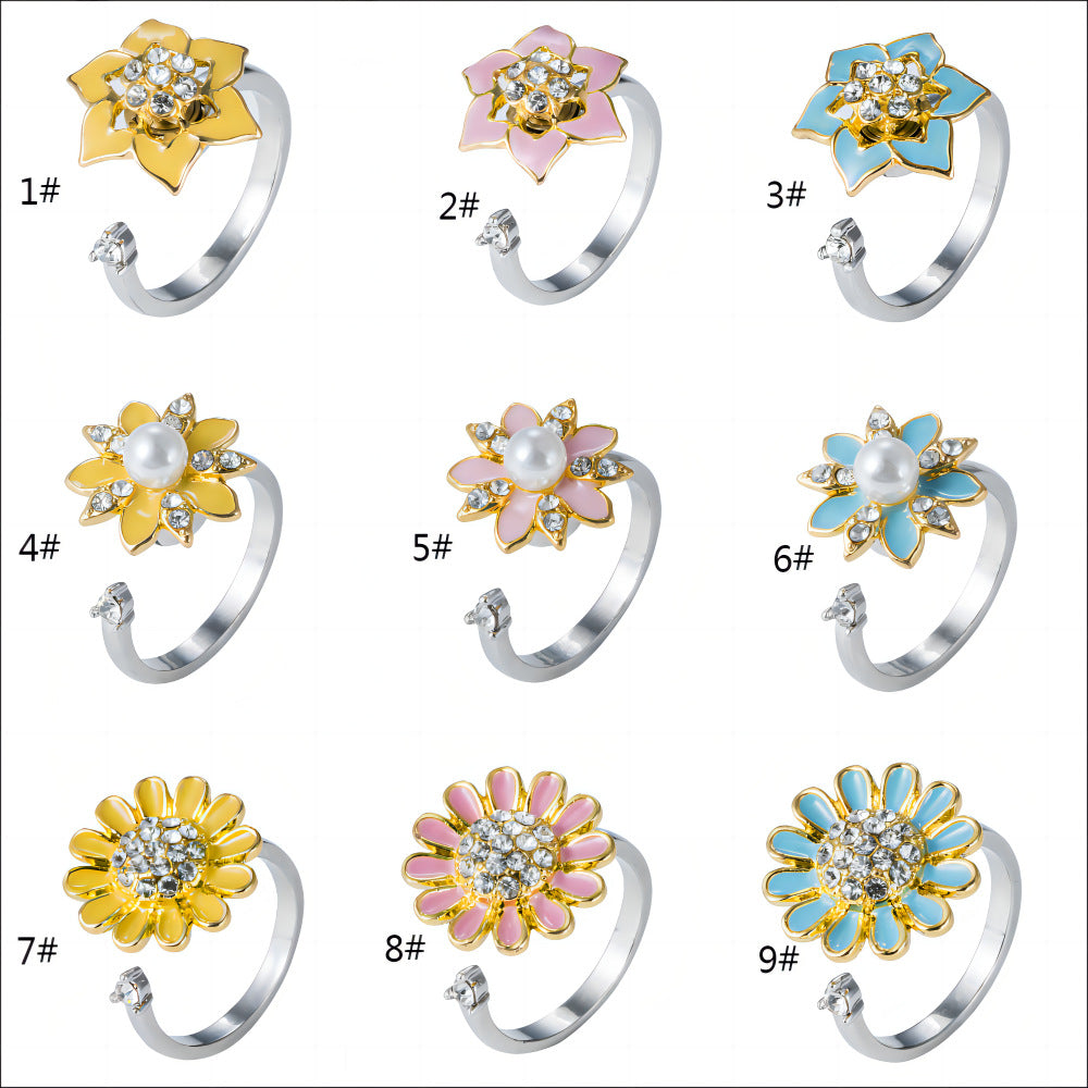 Wholesale Oil Dropping Rotating Sunflower Flower Ring