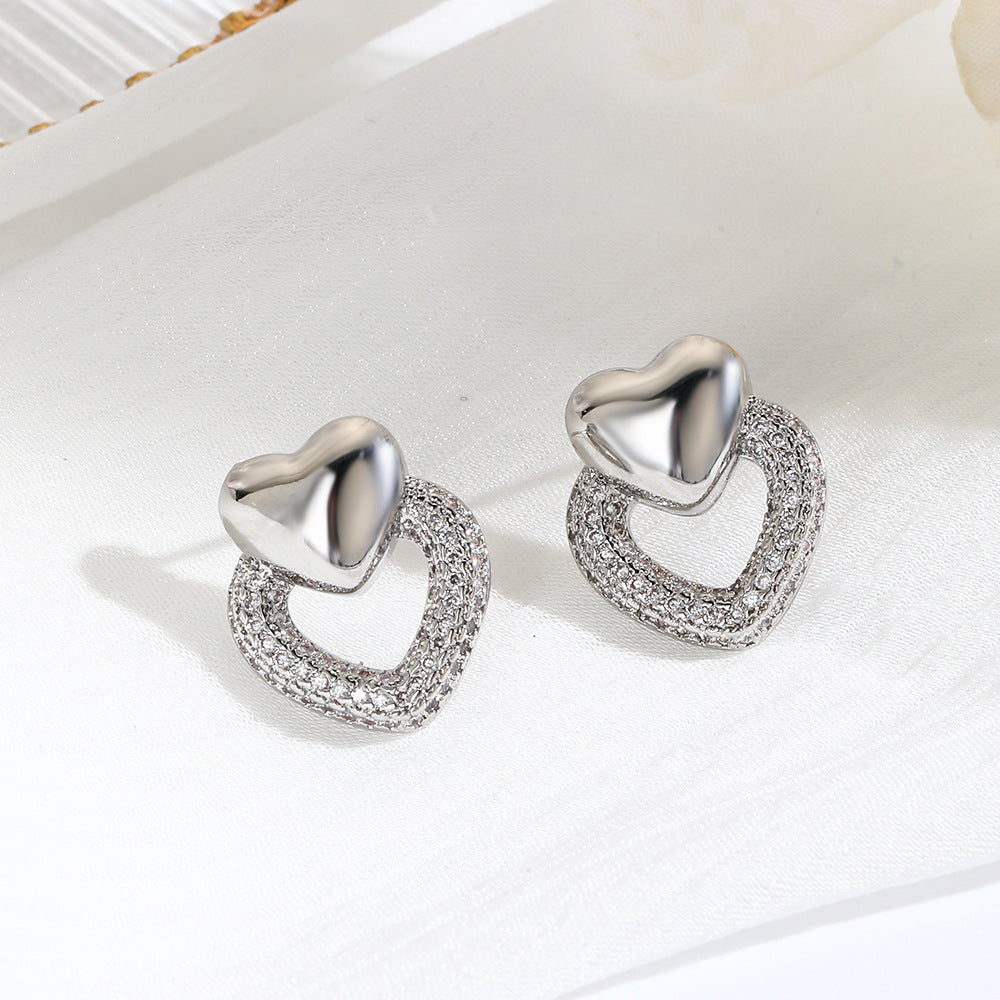 Wholesale personality copper plated 18k zircon love earrings