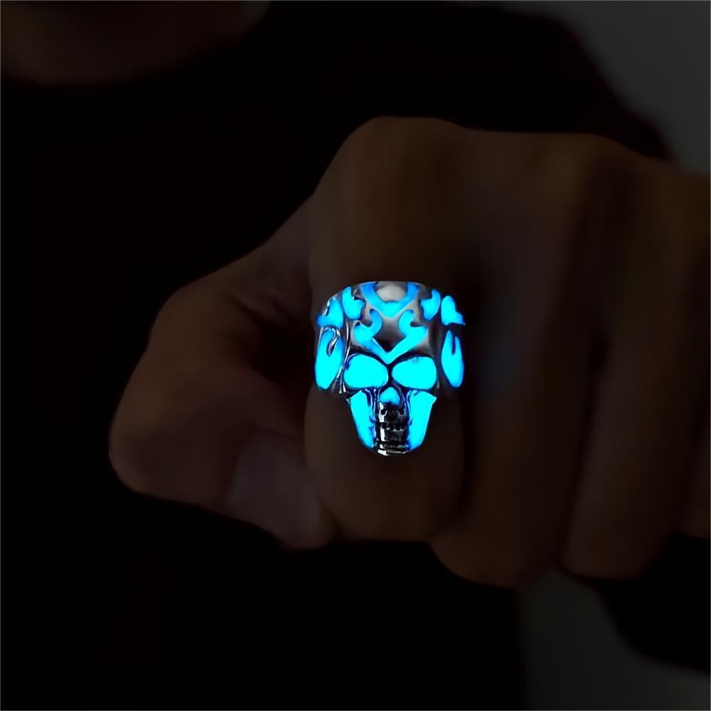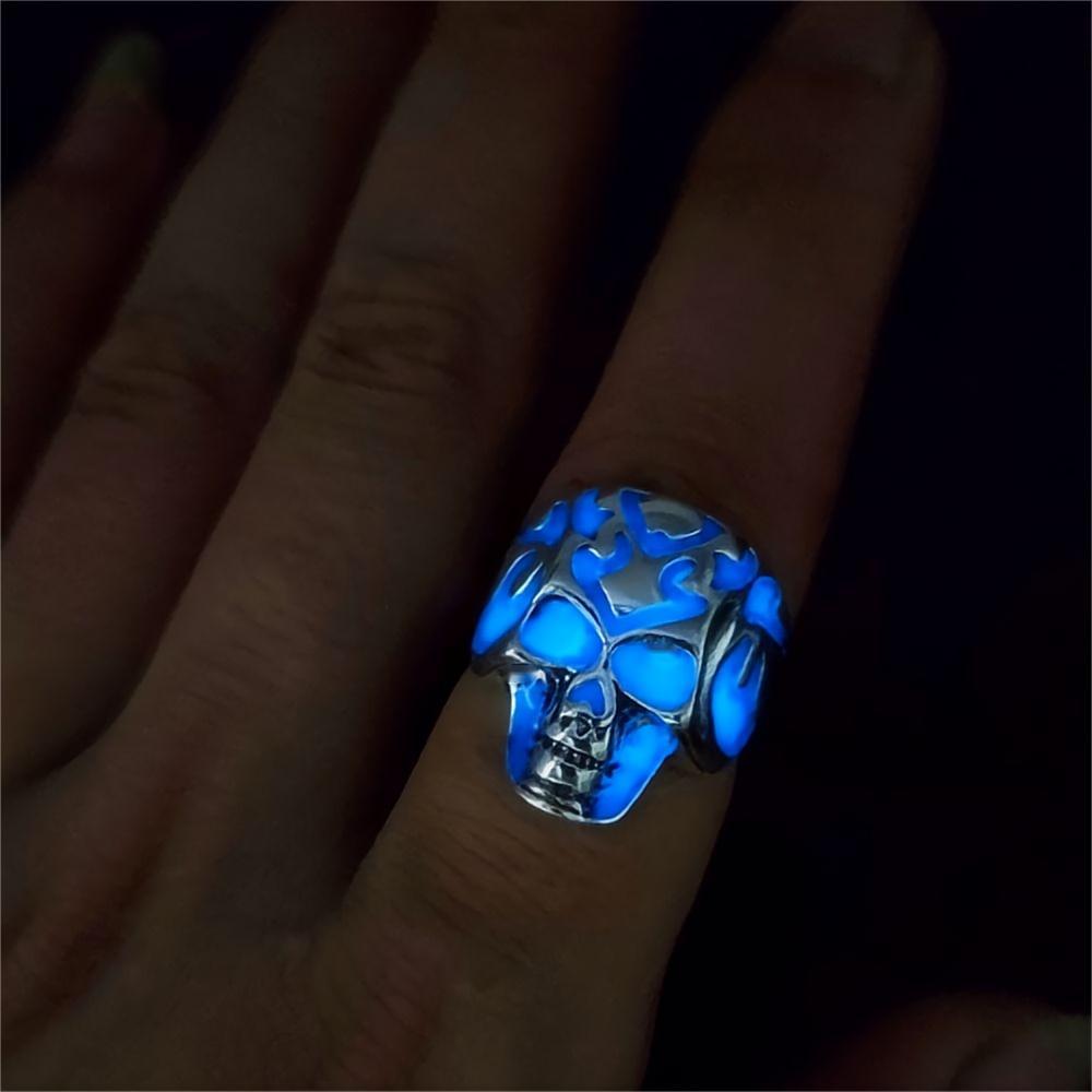 Wholesale Retro Flame Pattern Skull Luminous Ring Ring