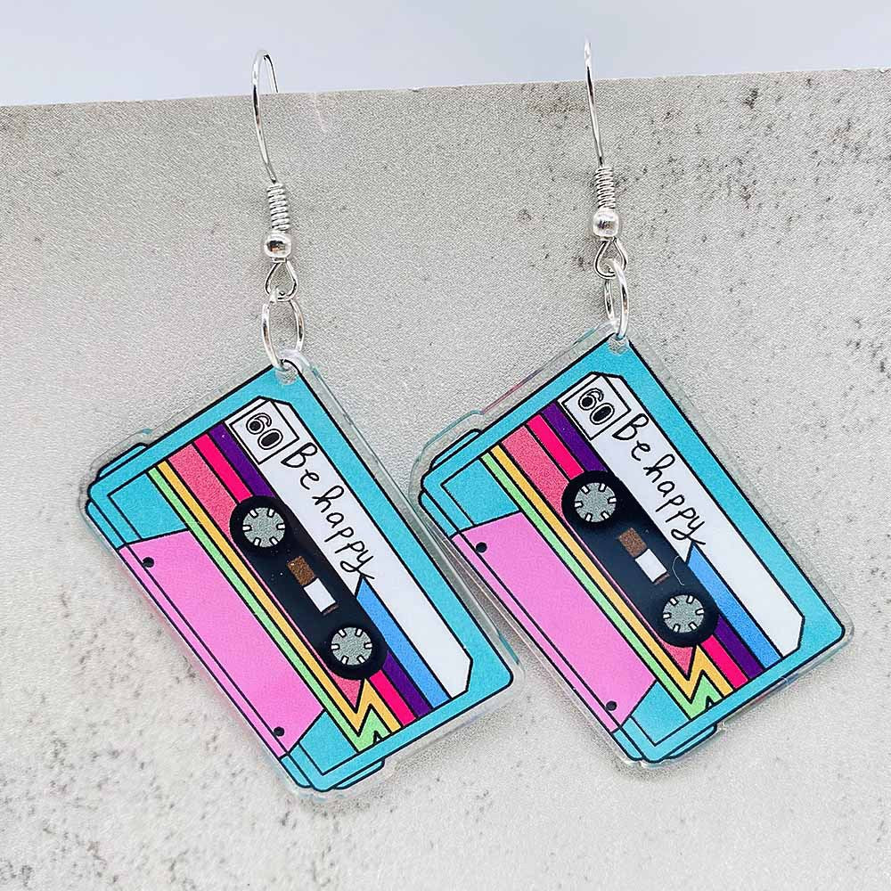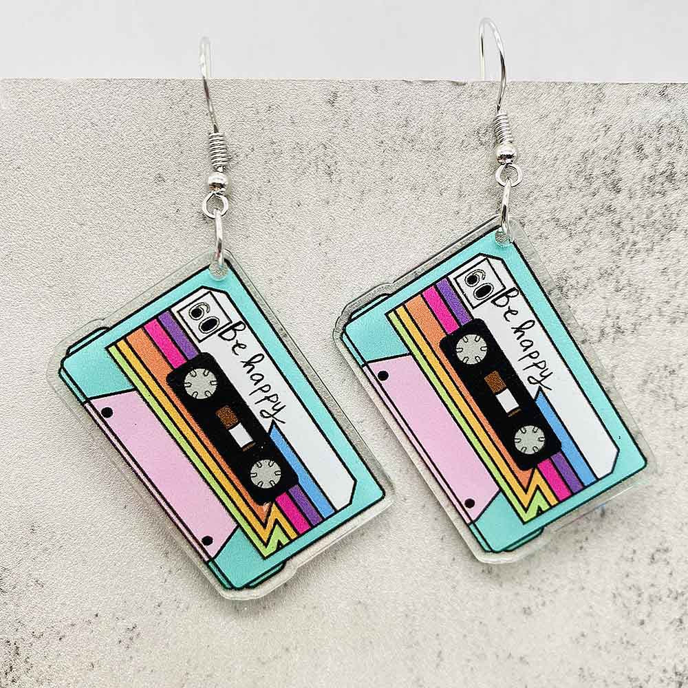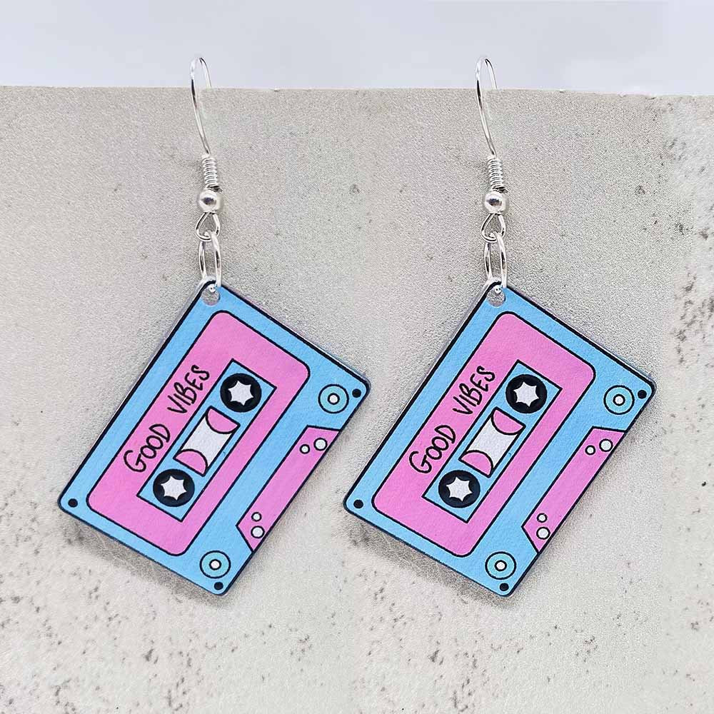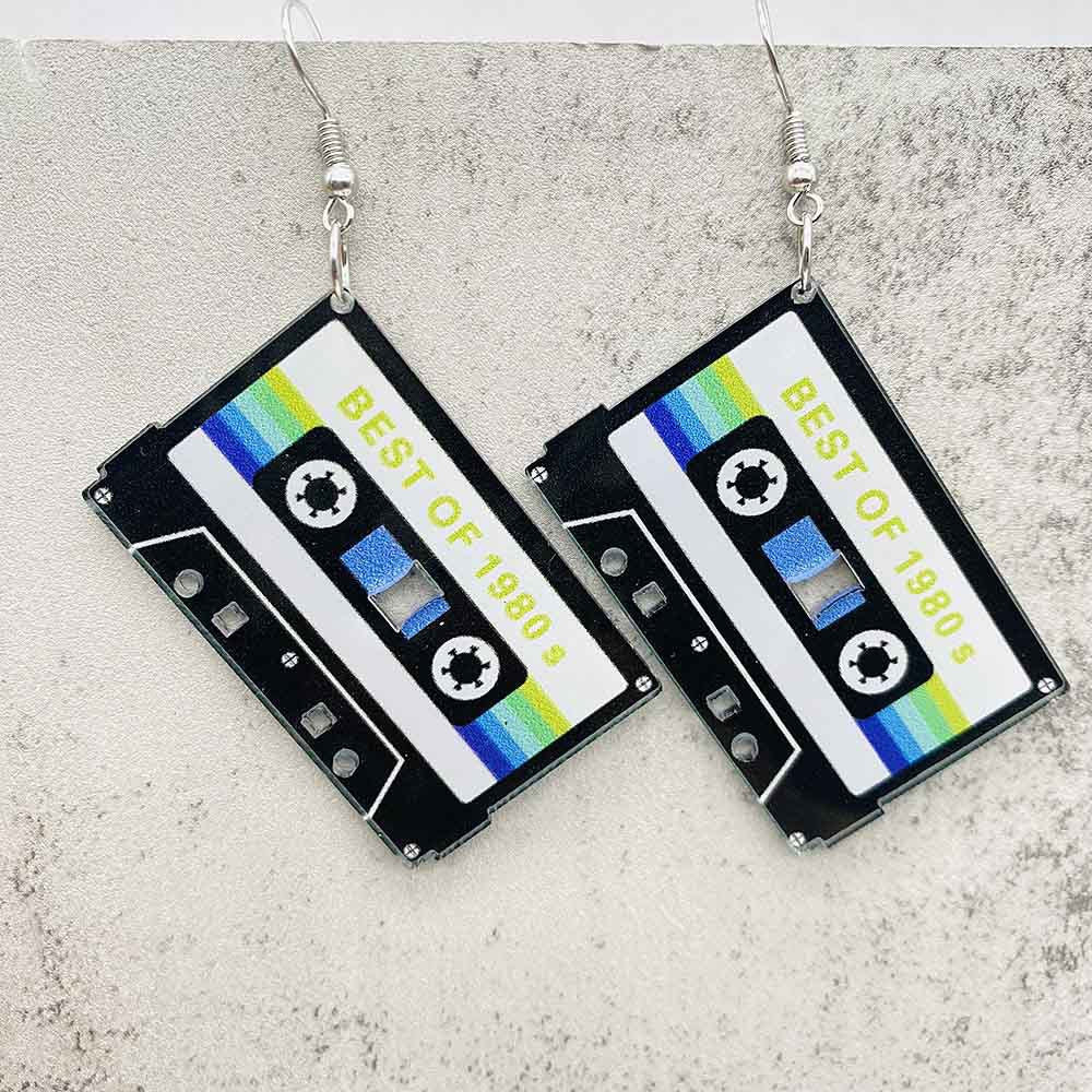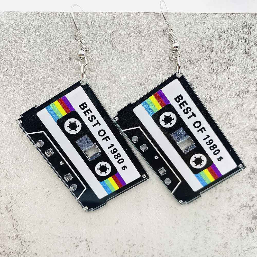 Wholesale Acrylic Retro Style Tape Earrings Record Game Console Earrings