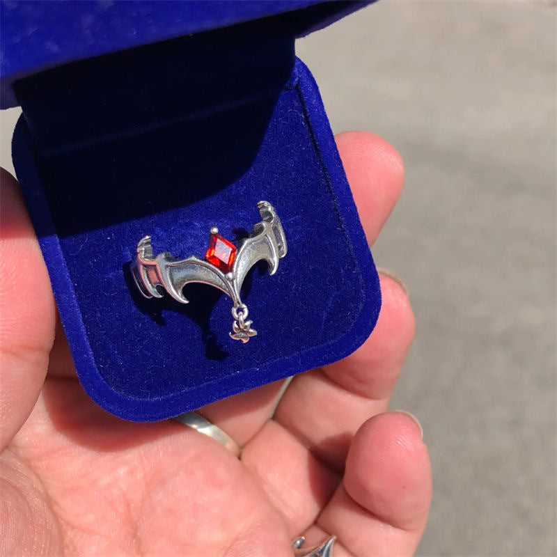 Wholesale Retro Zinc Alloy Red Diamond Open Ring