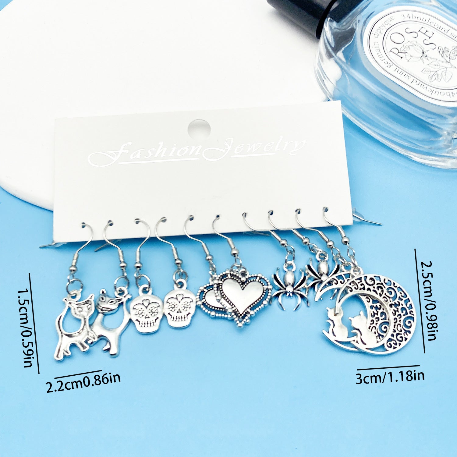 - 5 Pairs of Antique Silver Skull Cat Earrings Set - 18. 65g - ER141