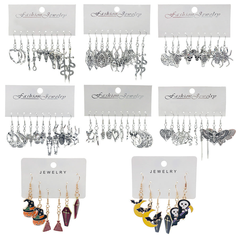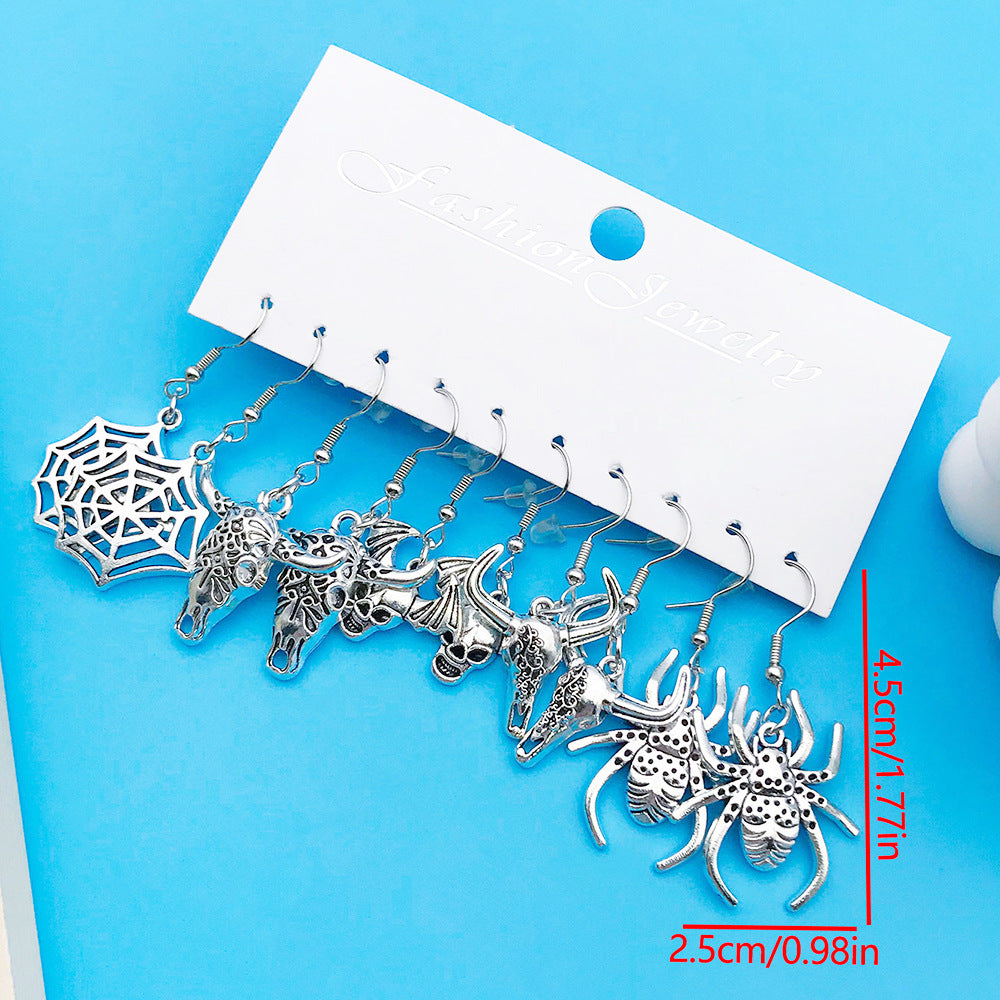 - 5 Pairs of Antique Silver Bull Head Skull Web Earrings Set - 21. 6g - ER632