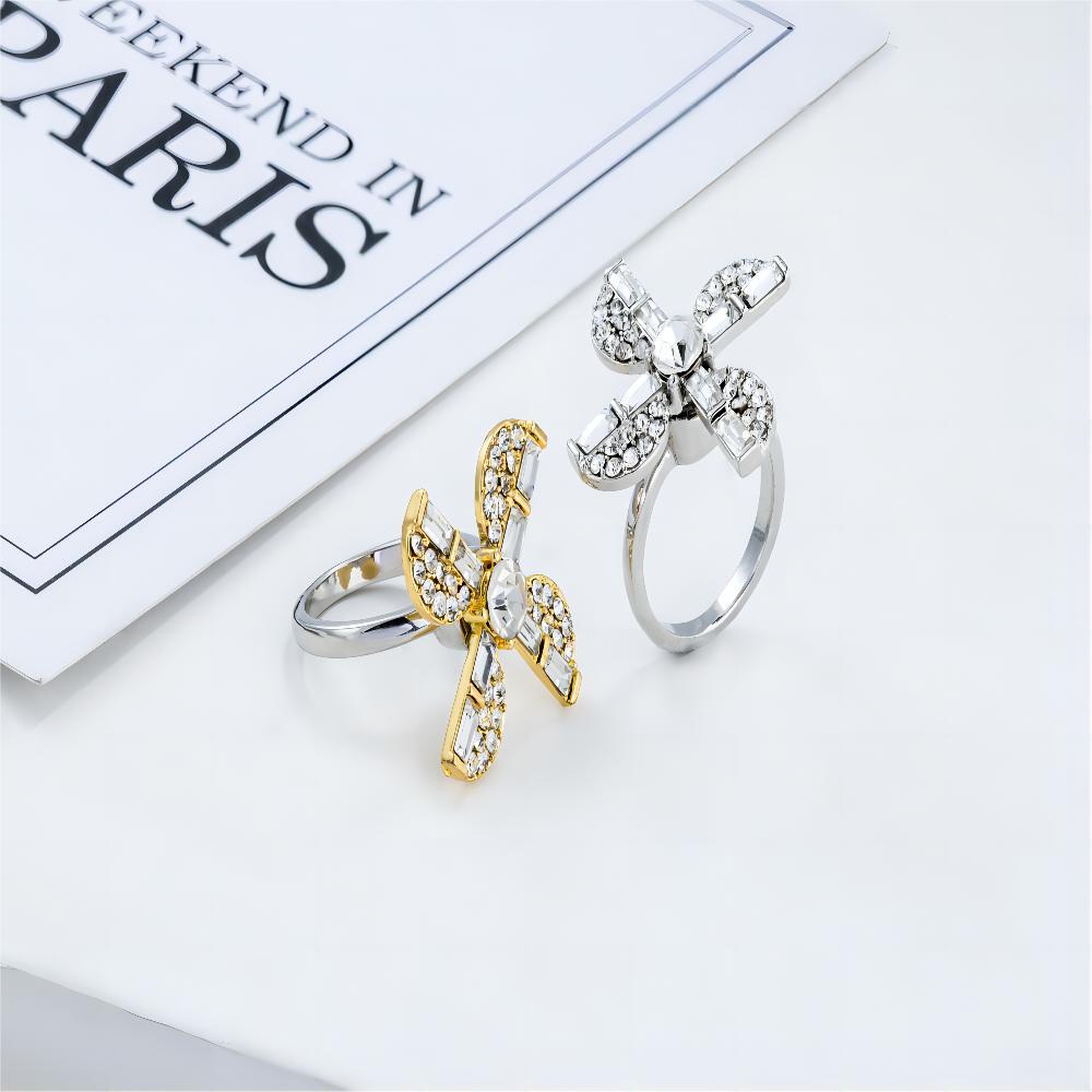 Wholesale windmill rhinestone live ring adjustable size rotating ring