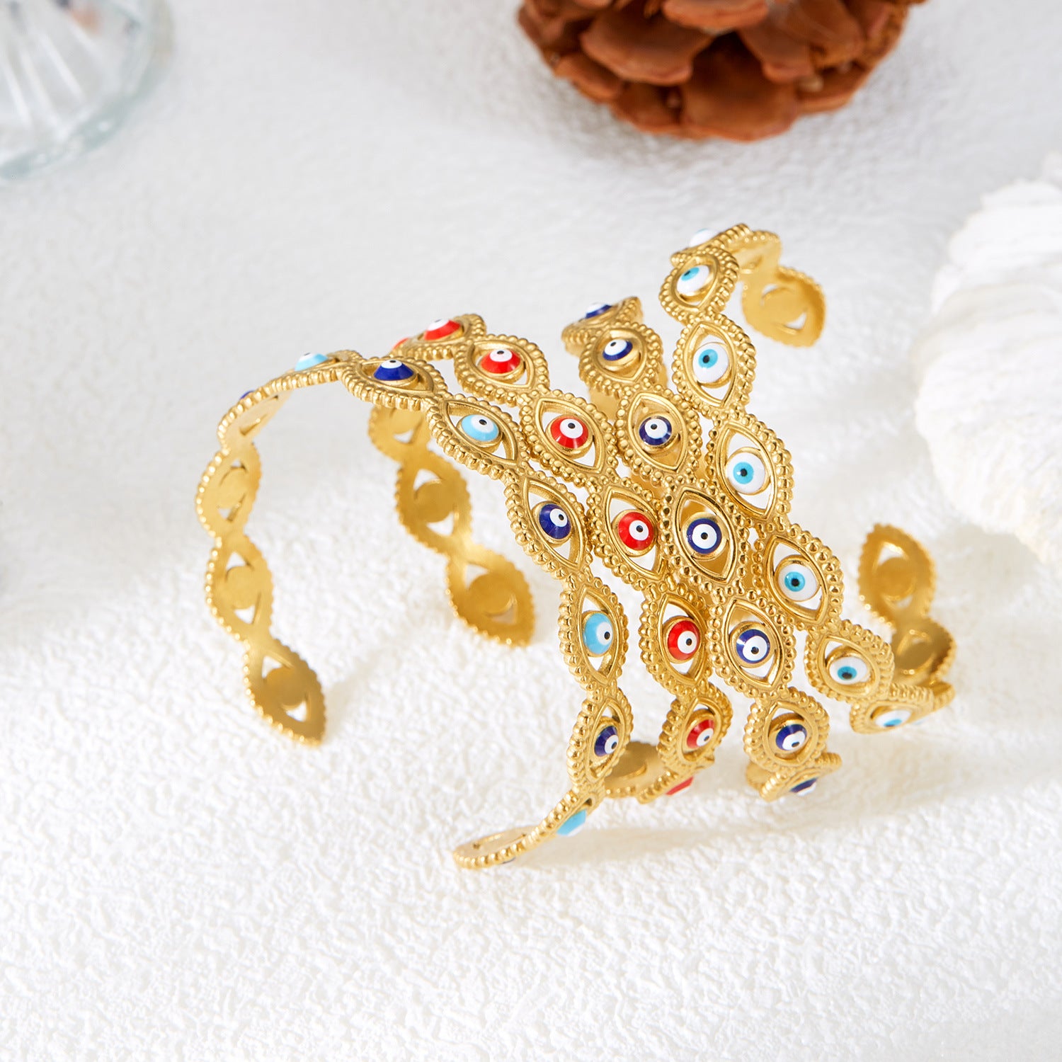 Wholesale Hollow Oil Dropping Blue Eyes Stainless Steel Bracelet