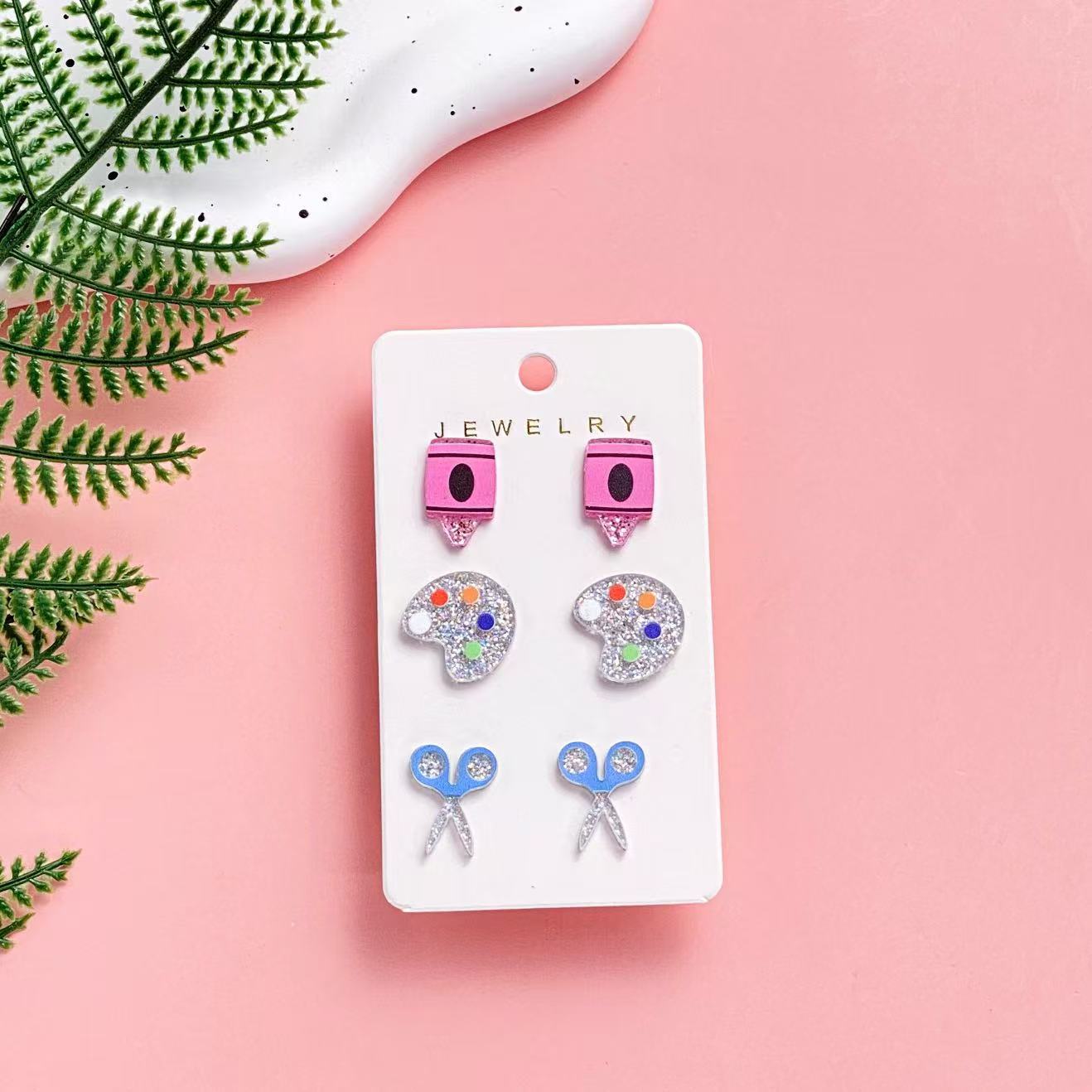 Wholesale Teacher's Day Pencil Drawing Board Earth Acrylic Printed Back to School Earrings