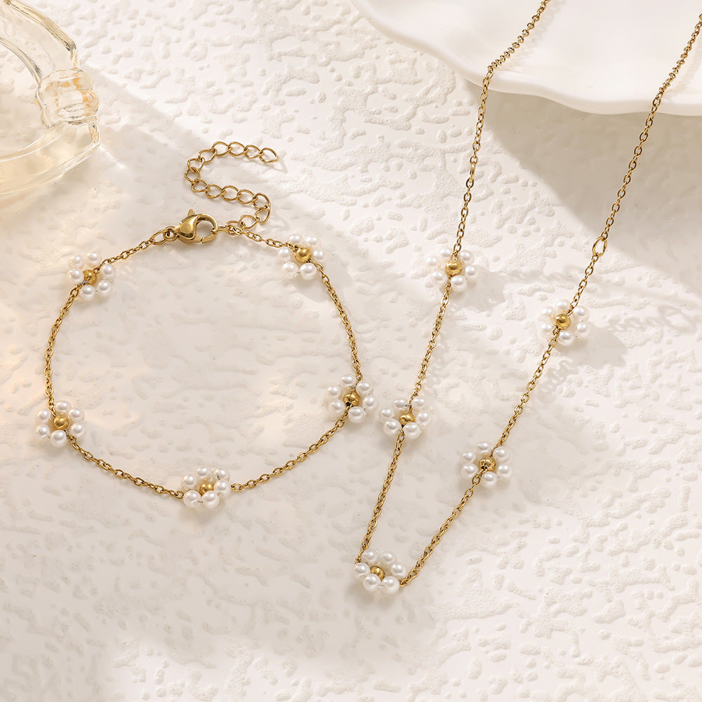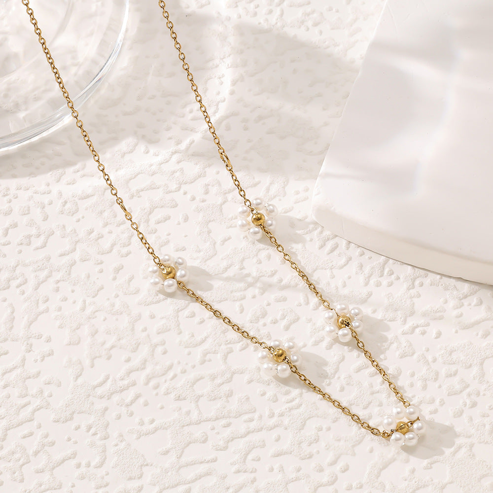 Wholesale Titanium Steel Braided Flower Pearl Necklace