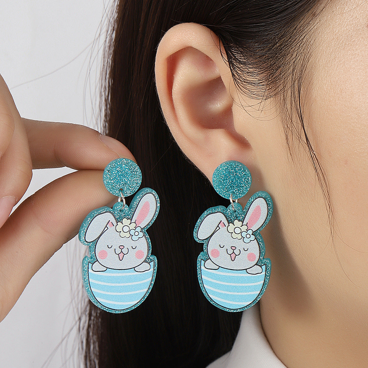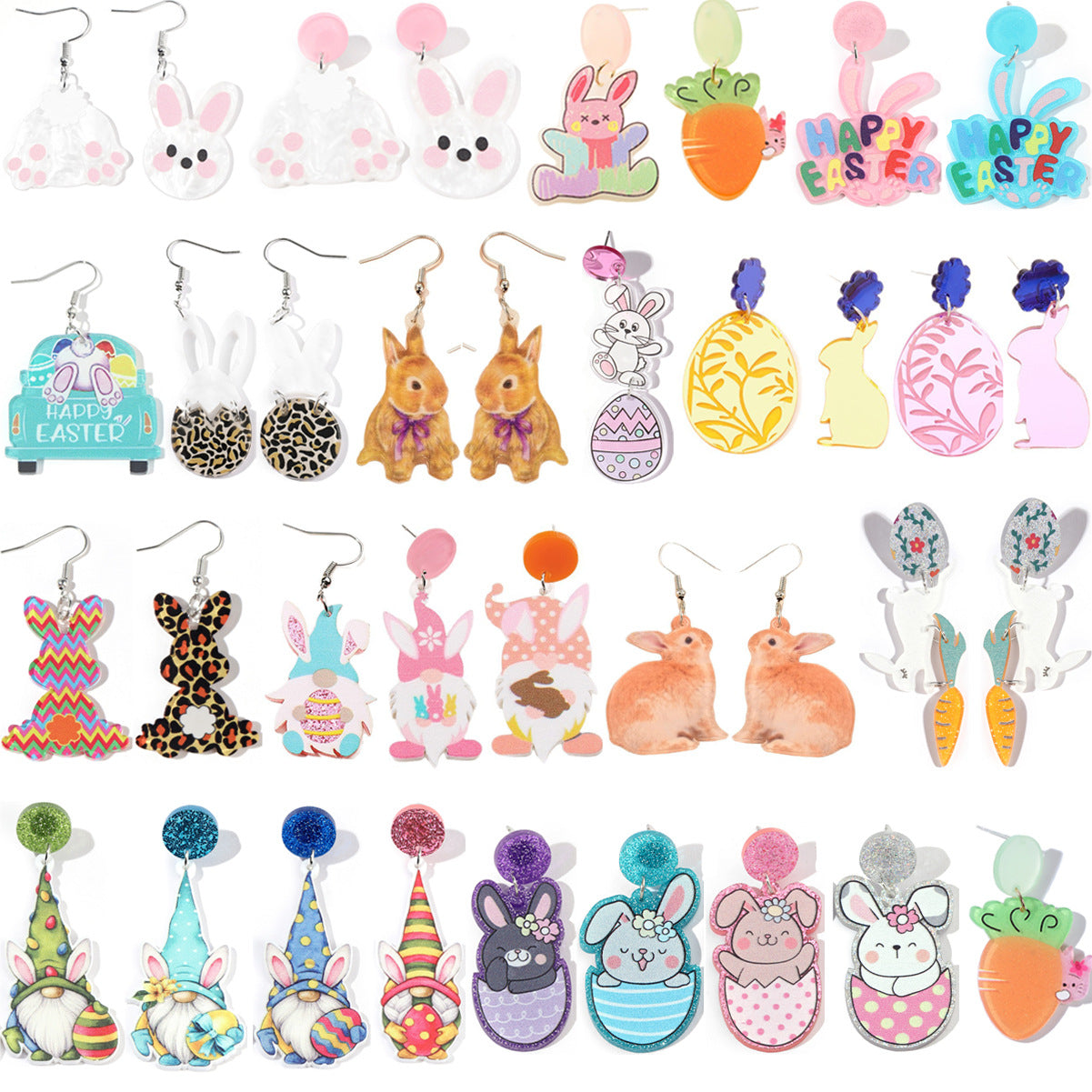Wholesale Acrylic Cartoon Print Easter Bunny Egg Carrot Earrings