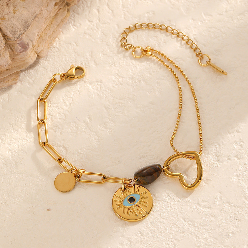 Wholesale Stainless steel cross and evil eye pendant with heart-shaped bracelet