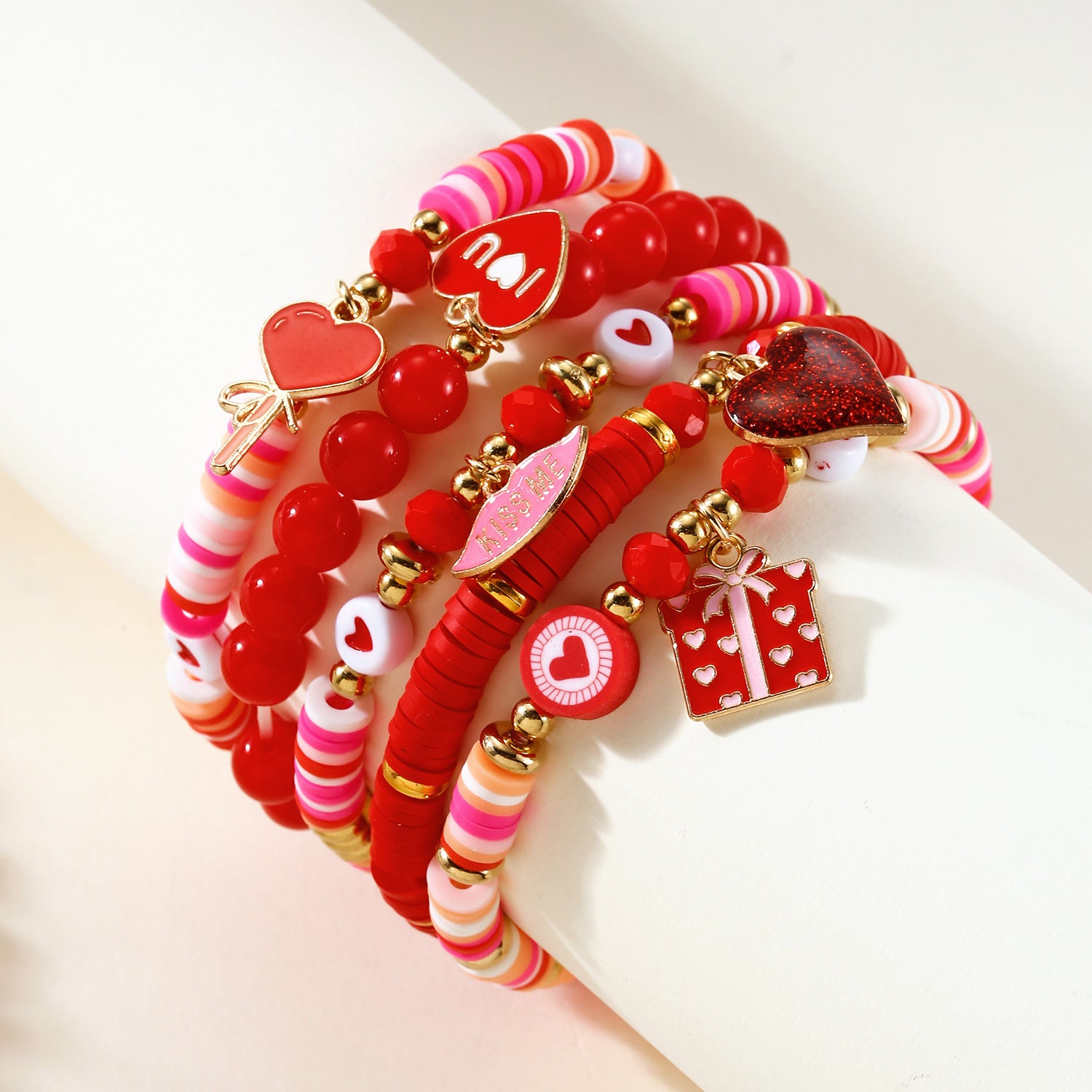 Wholesale Zinc alloy multi-layered red Valentine' s Day beaded bracelet