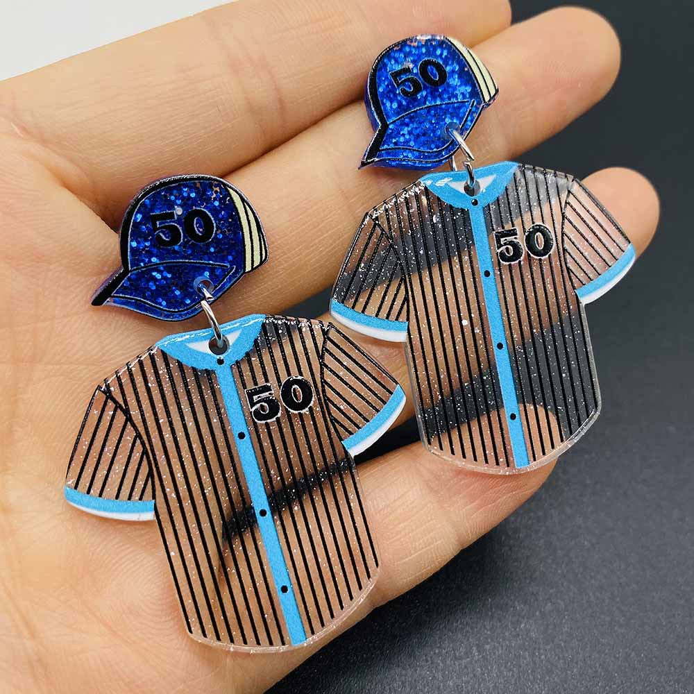 Wholesale Sports Baseball Rugby Basketball Tennis Blue Uniform Acrylic Earrings