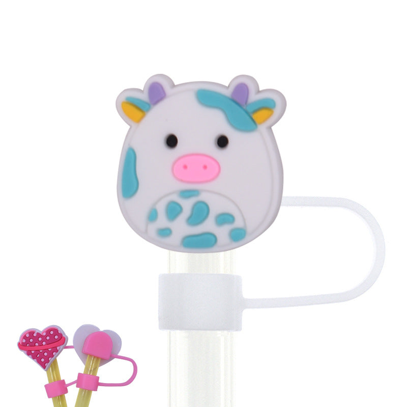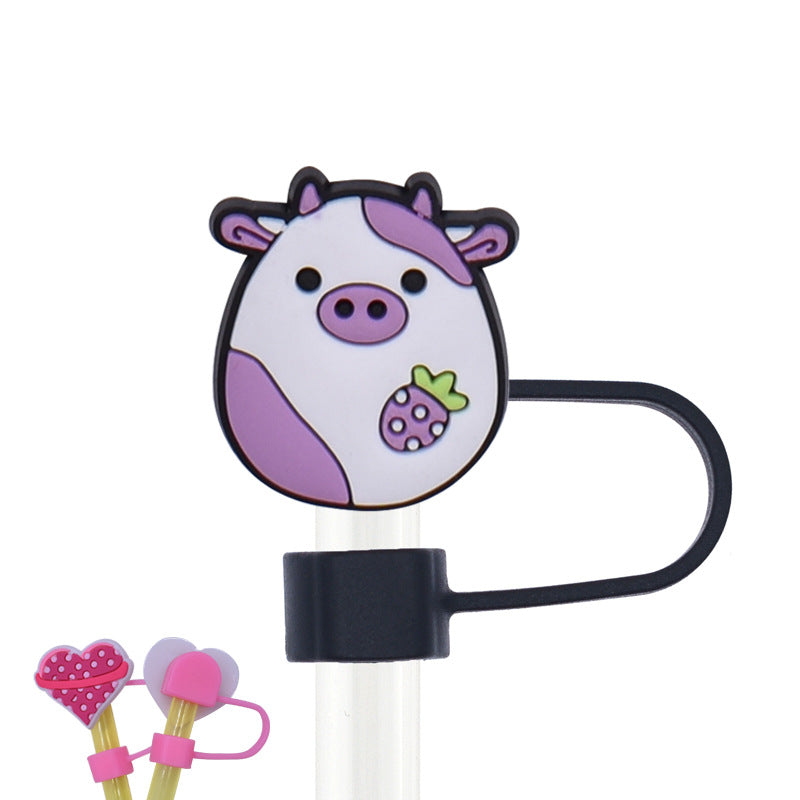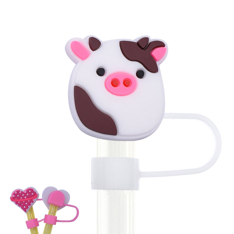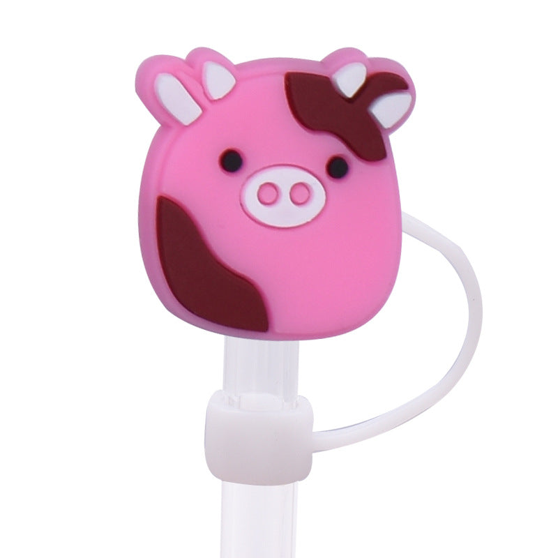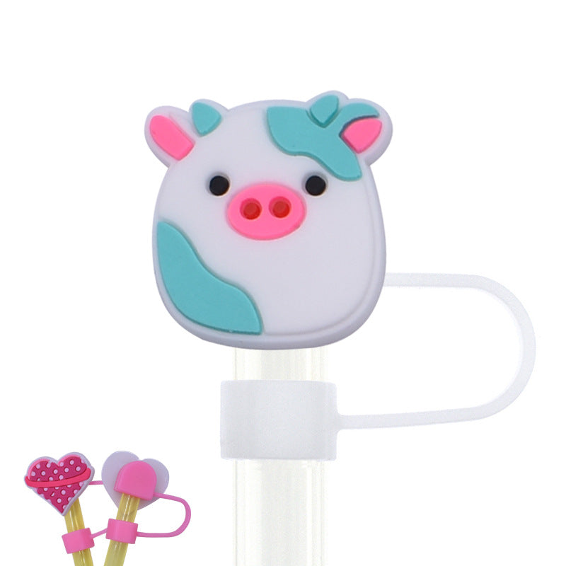 Wholesale Random 100pcs Cartoon Cute Pig Straw Cover 10MM Straw Tube Cap