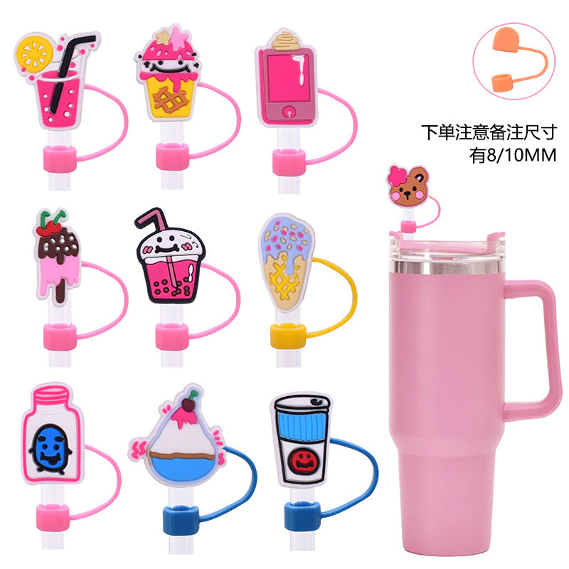 Wholesale Random 100pcs Cute Cartoon Dessert Straw Cover 10MM Straw Tube Cap