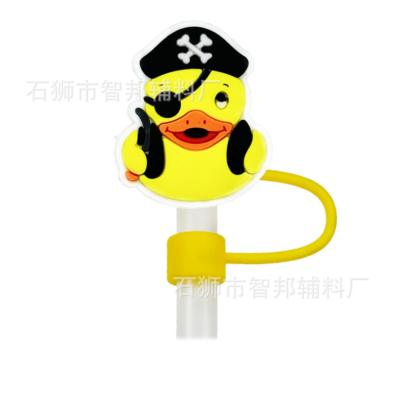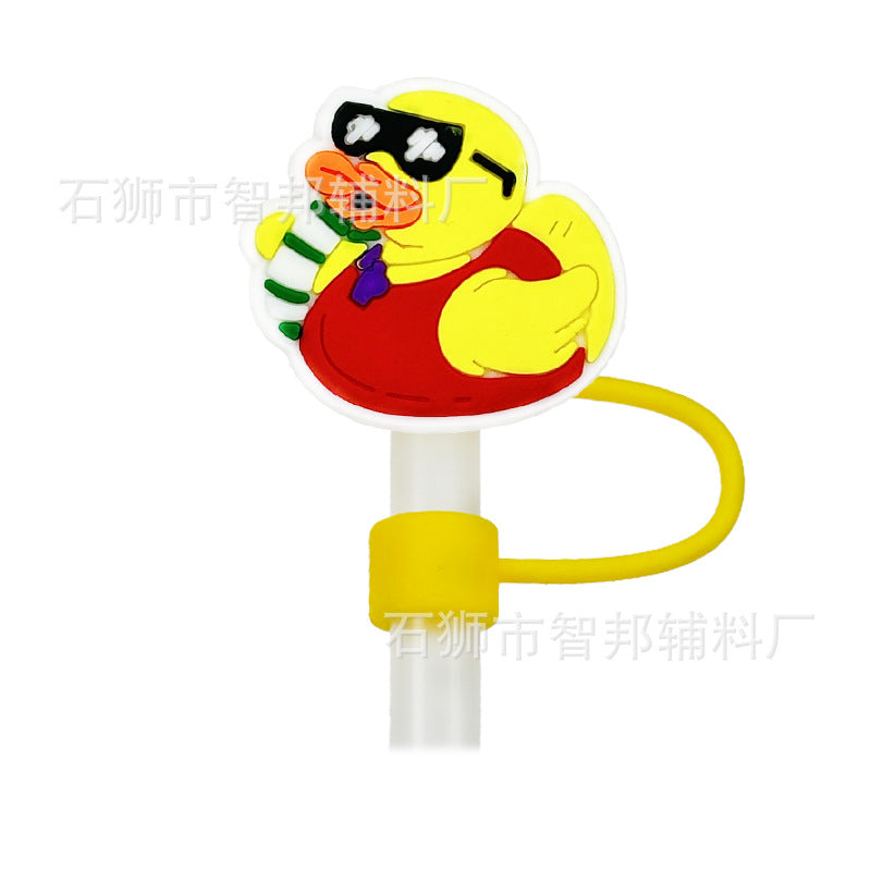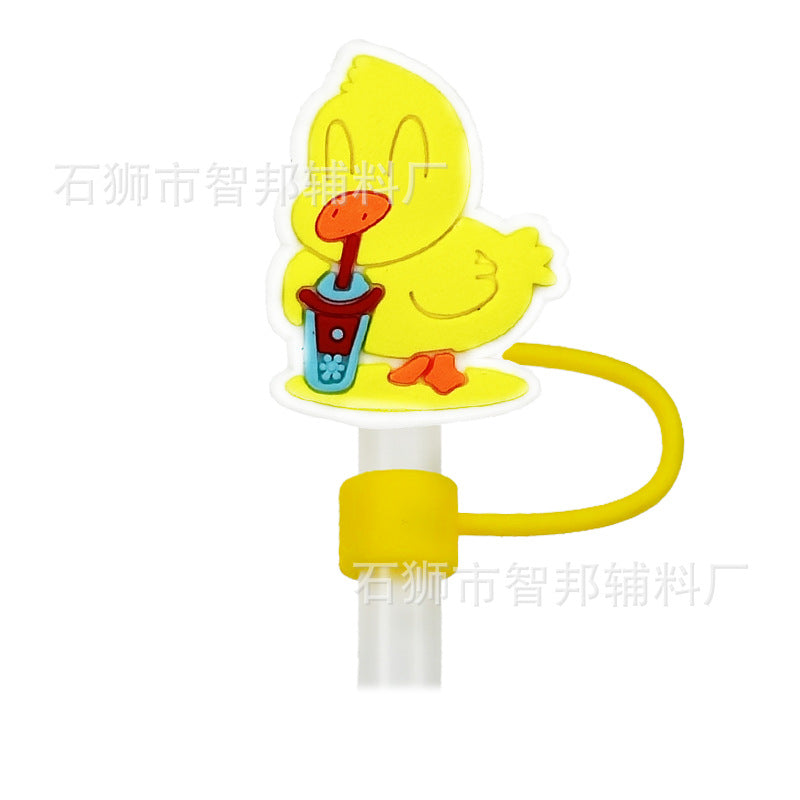 Wholesale 10pcs 10mm Little Yellow Duck Cartoon Cute Duck PVC Soft Straw Tube Cap