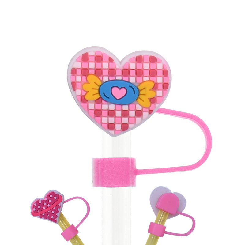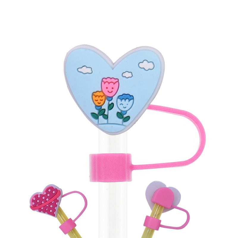 Wholesale Random 100pcs Cartoon Heart Straw Cover Straw Tube Cap