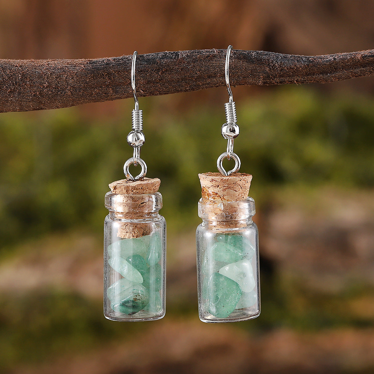 Wholesale Creative Asymmetrical Stone Wishing Bottle Earrings