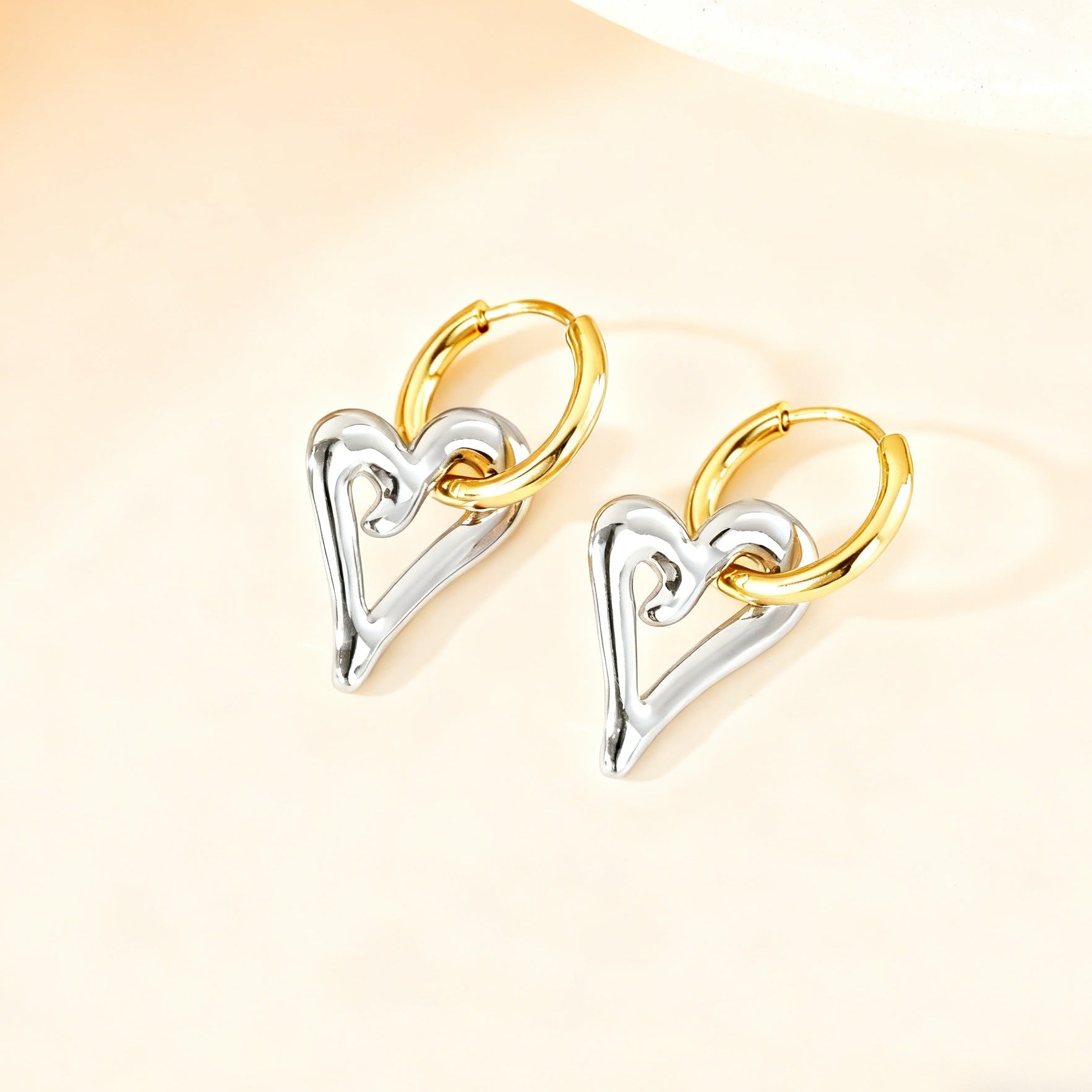 - Earring hoops 2* 10mm, pointed peach heart 12* 17mm, two-tone