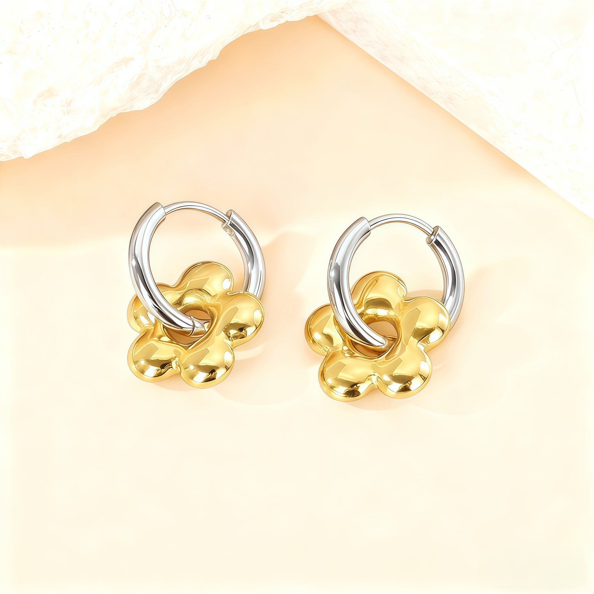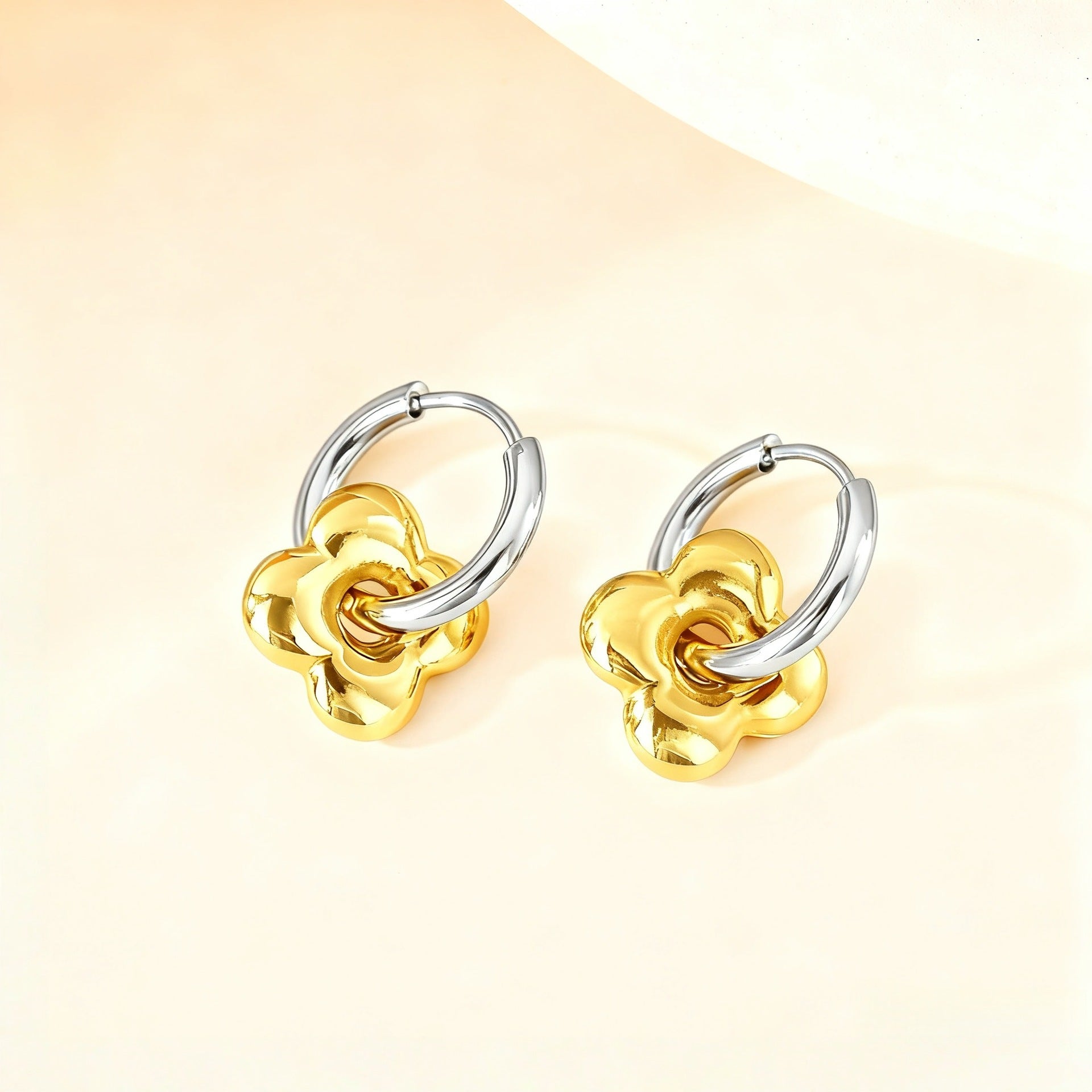 - Earring hoops 2* 10 four-leaf flower 15* 15mm two-color a