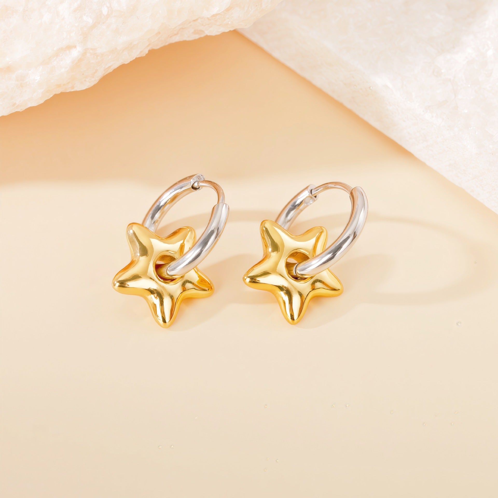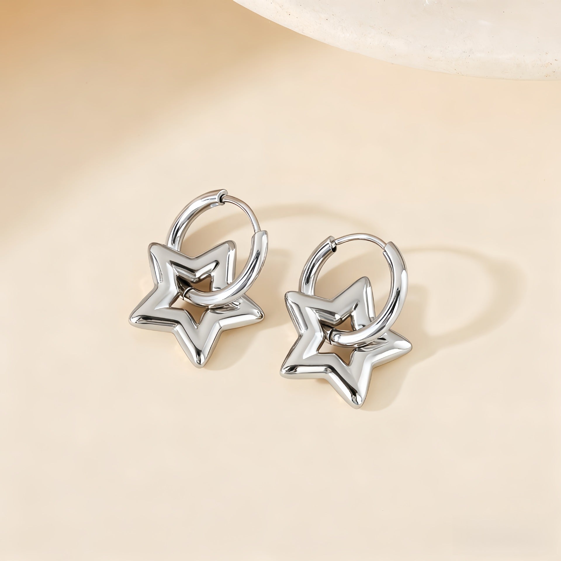 - Earring hoops 2* 10, five-pointed star 12* 12mm, steel color