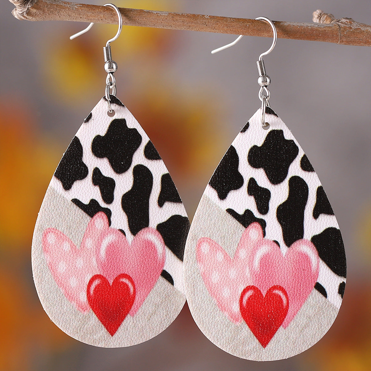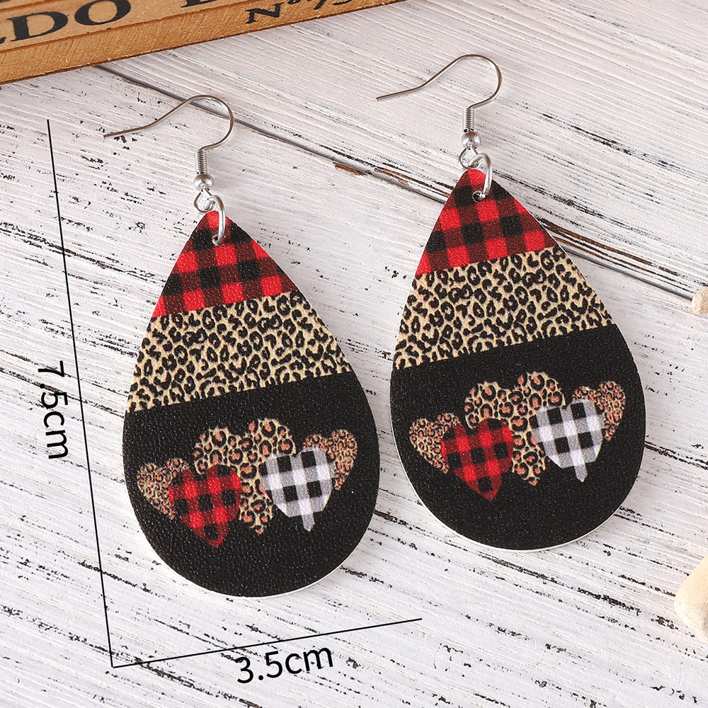 Wholesale PU leather Valentine' s Day checkered letter leopard print heart earrings