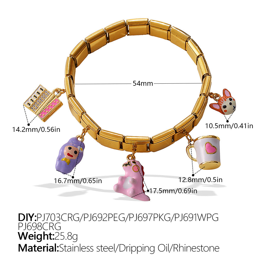 Wholesale Animal Series Bear Dinosaur Pendant Stainless Steel Composable Bracelet