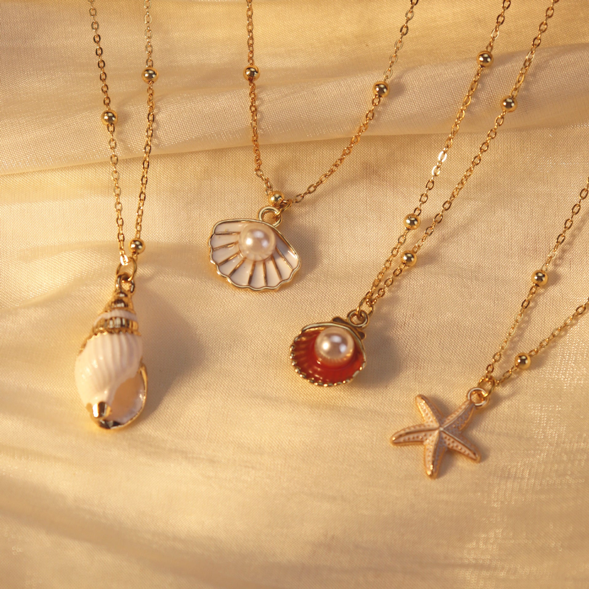 Wholesale Bohemia do not fade titanium steel pearl shell conch necklace