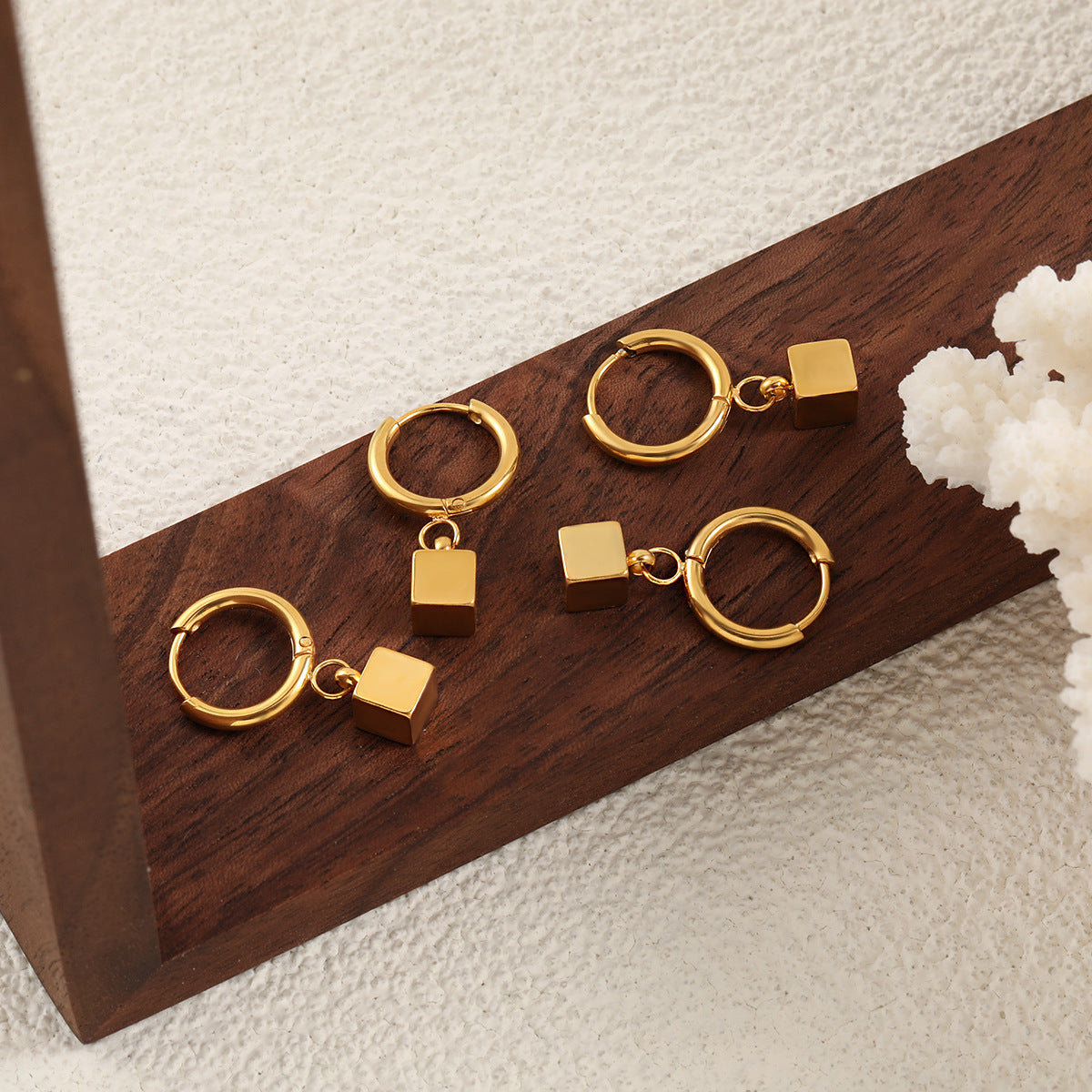 Wholesale geometric four square ear buckle titanium steel earrings