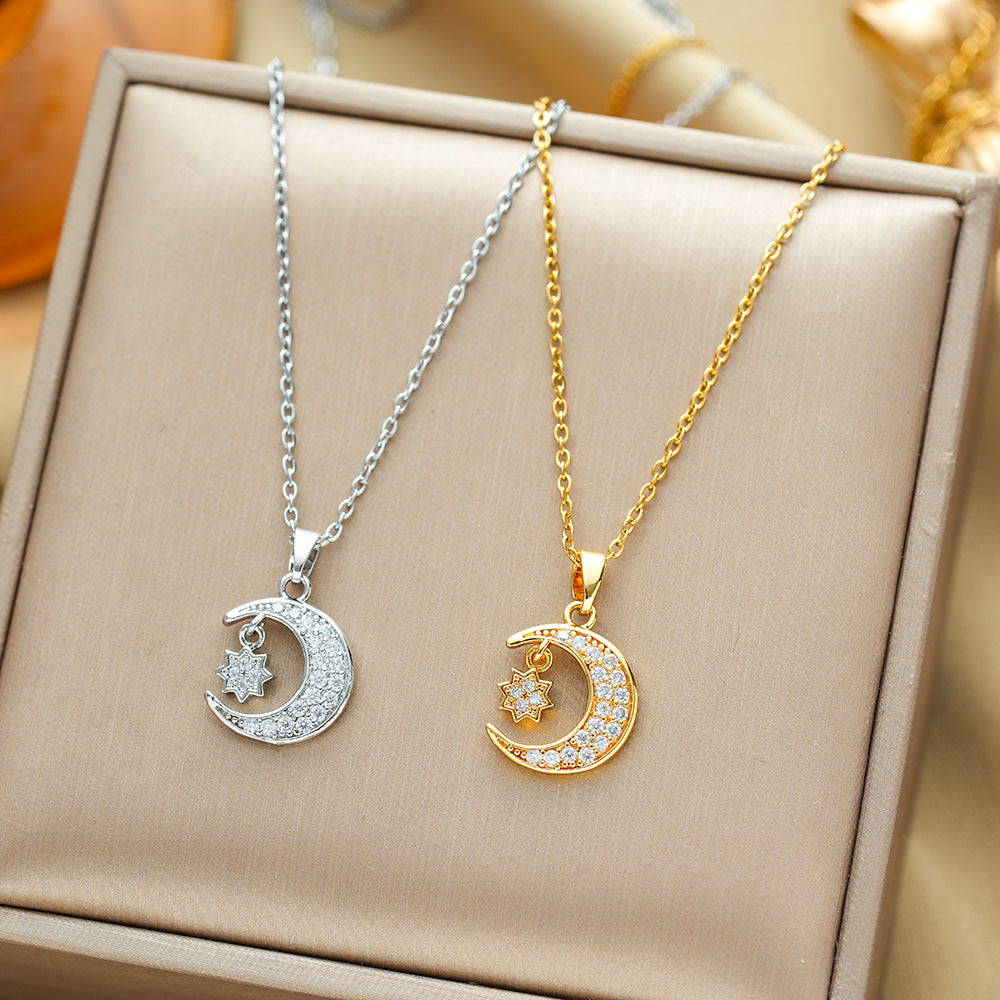 Wholesale Light Luxury Titanium Steel Necklace Diamond Lucky Moon Star Pendant Micro-inlaid Zircon Necklaces