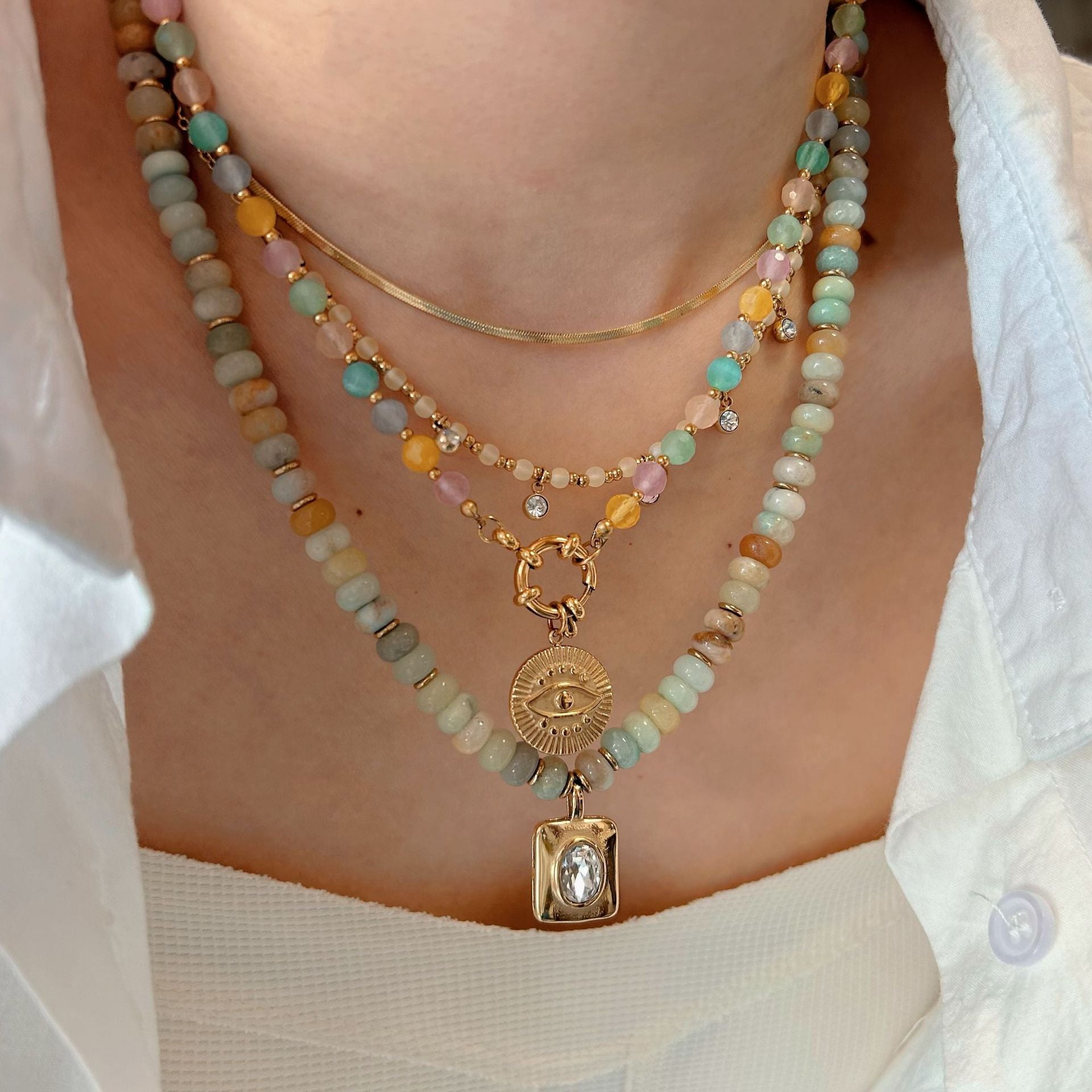Wholesale Stainless steel Natural Stone Colorful Beaded Necklace