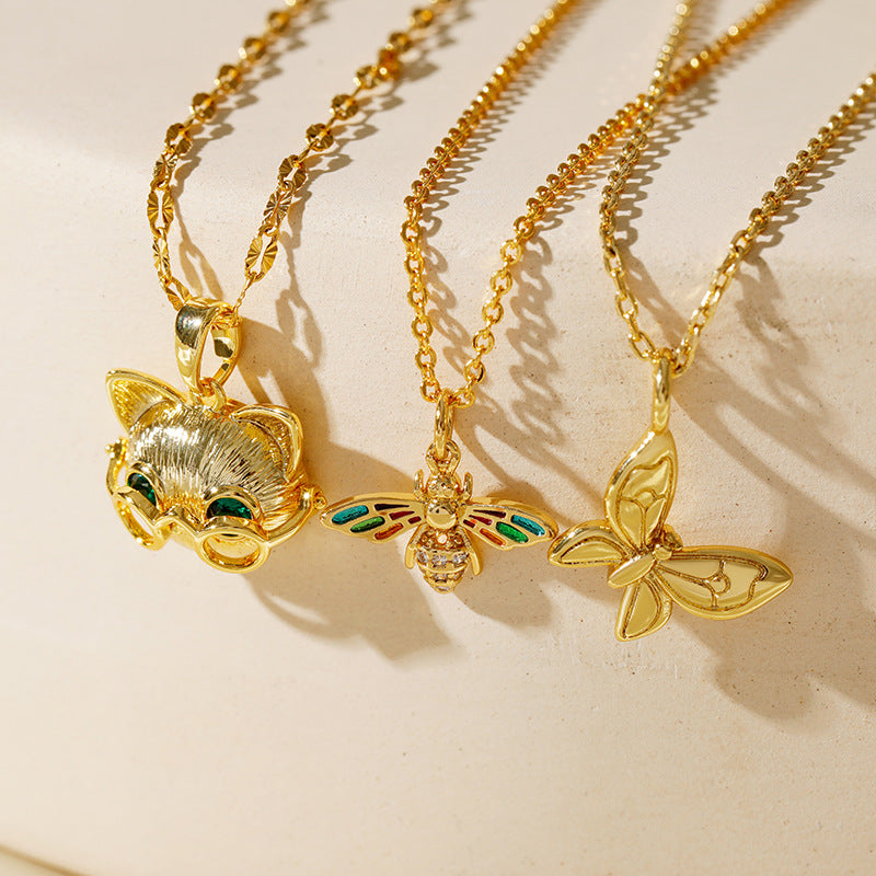 Wholesale Stainless steel Eye Cat Zircon Copper Plated 18K Gold Color Golden Butterfly Necklaces