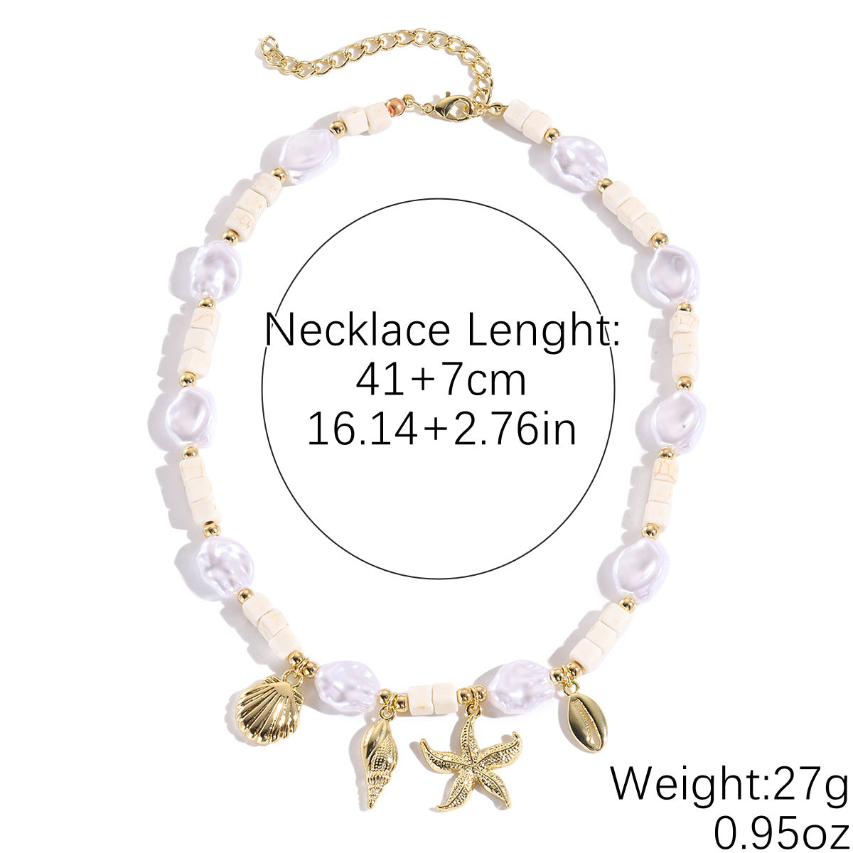 Wholesale Alloy starfish conch pendant high-grade turquoise necklace