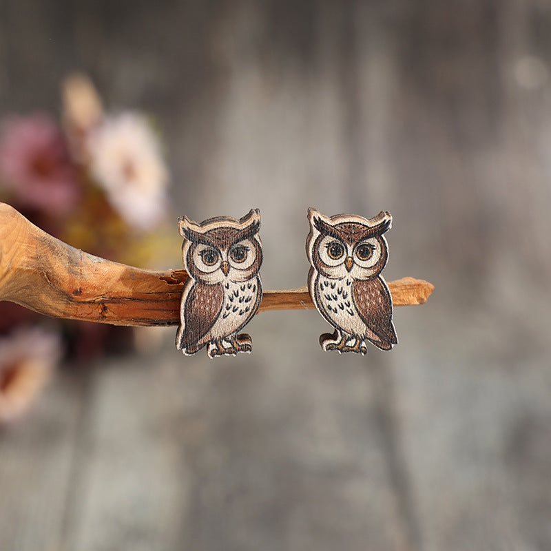 Wholesale Animal Wooden Owl Fashion Earrings