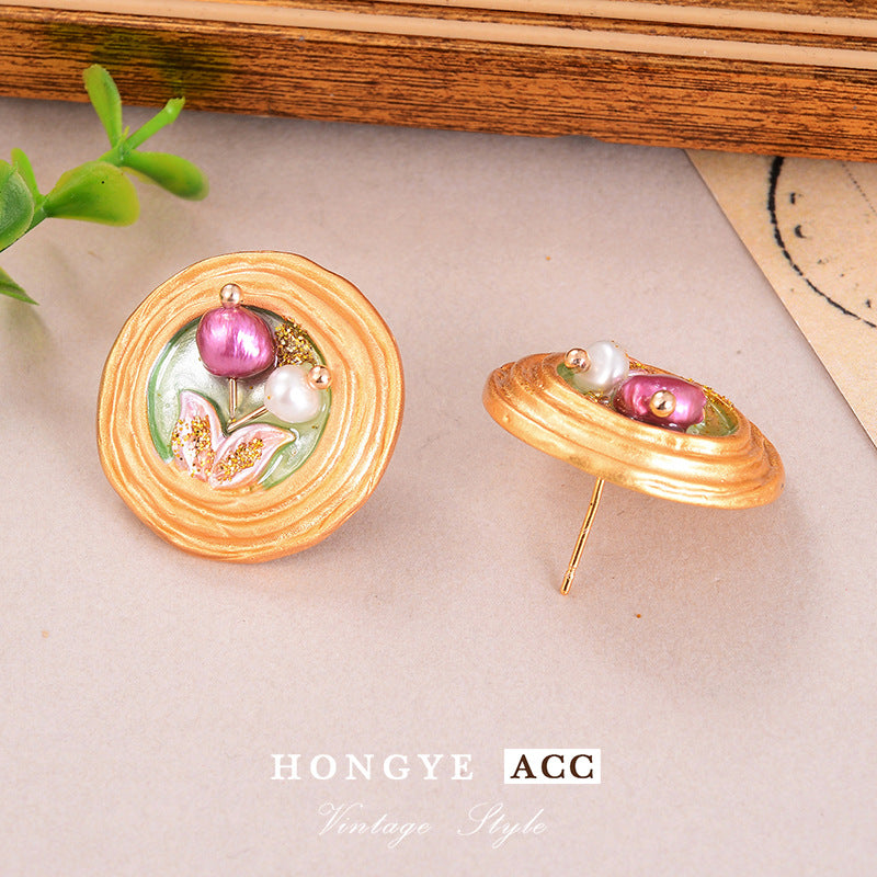 Wholesale Baroque Pearl Earrings Oil Painting Series Ear Jewelry