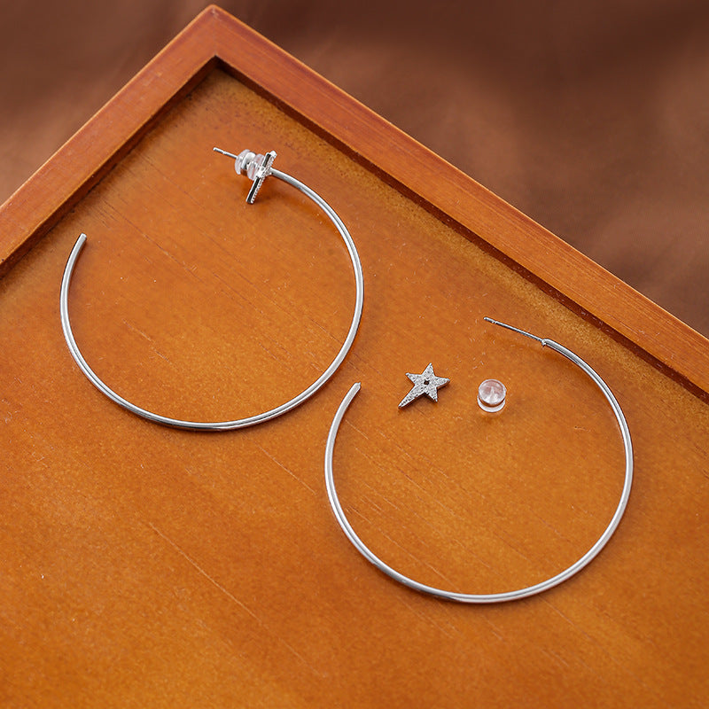- Large hoop earrings with five-pointed star inlay-silver needle