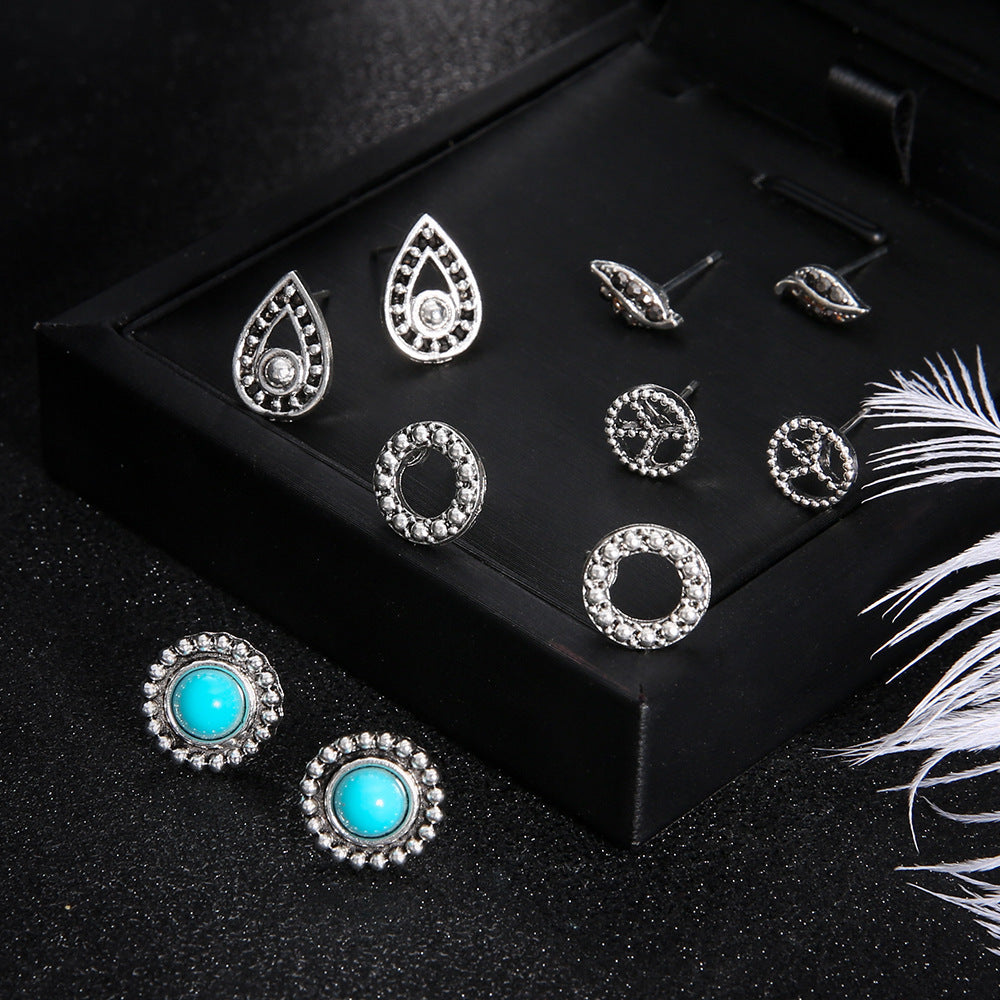 Wholesale Bohemian retro hollow turquoise geometric circle earrings