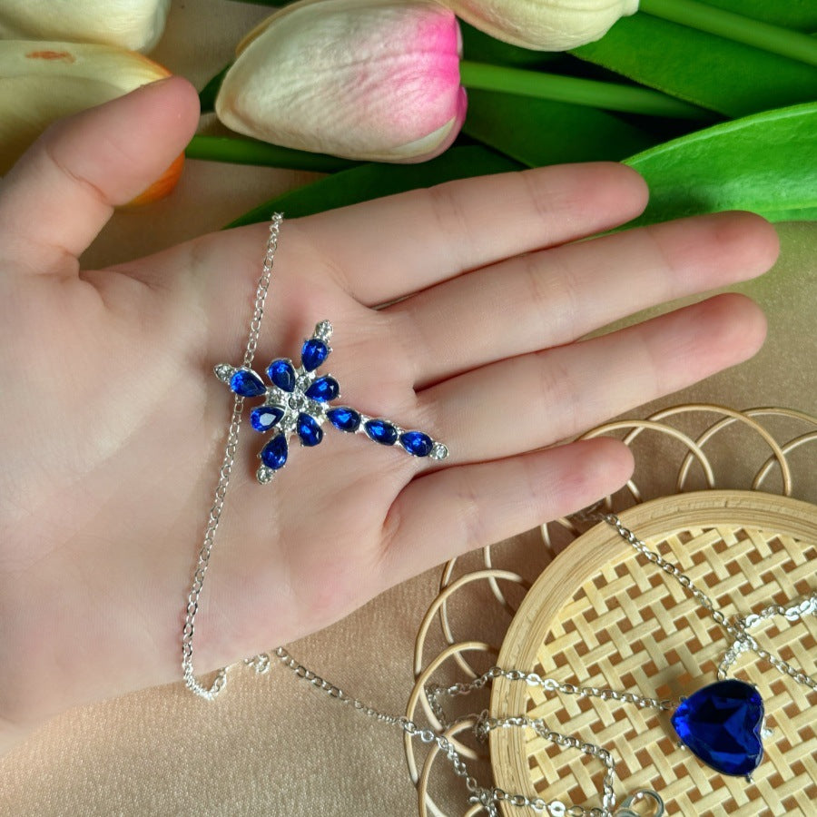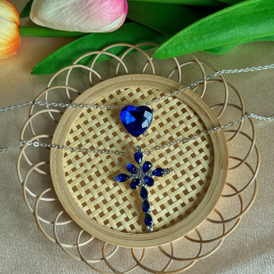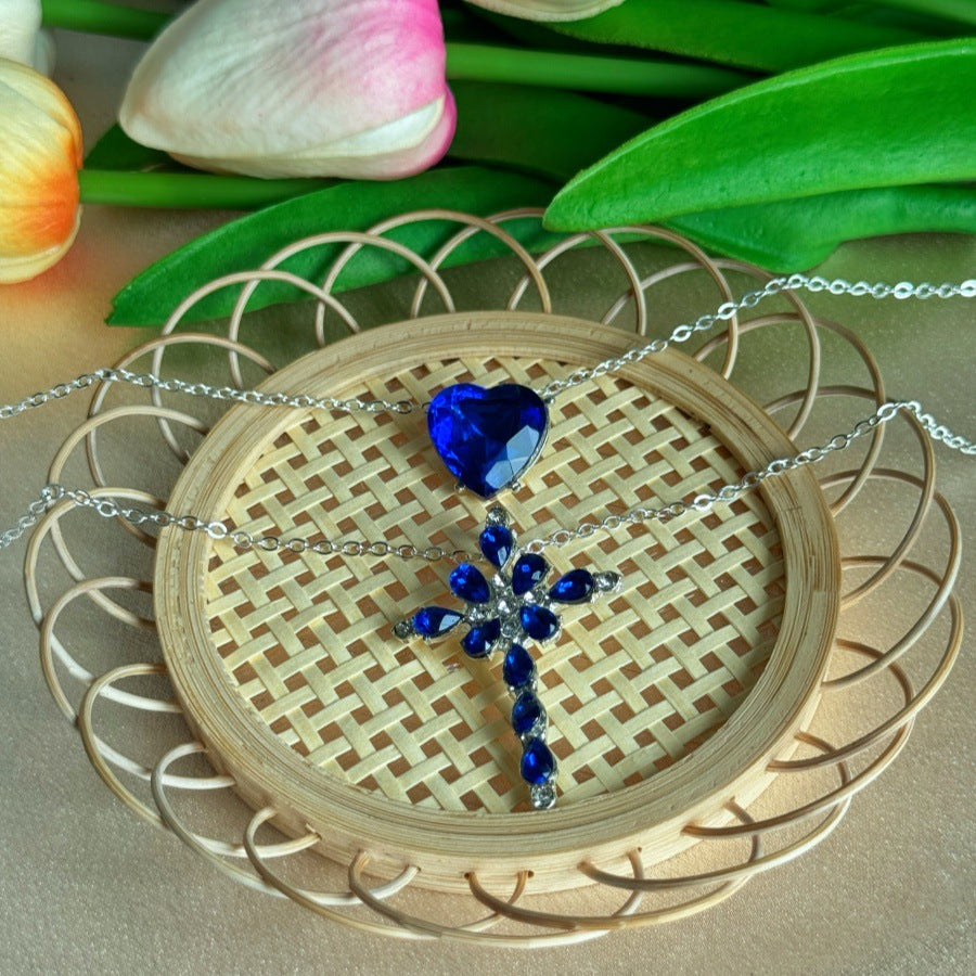 Wholesale Double Layer Cross Blue Crystal Rhinestone Love Cross Necklace