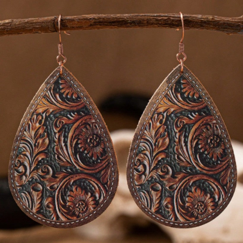 Wholesale Ethnic style water drop pattern PU leather earrings