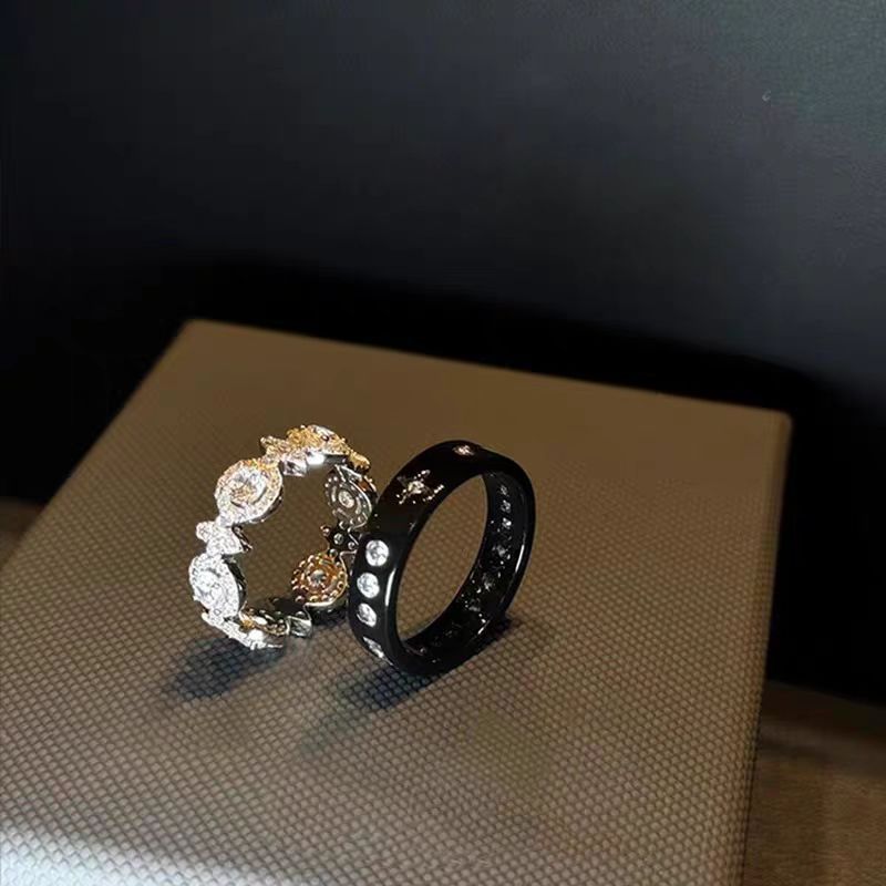 Wholesale Flash Diamond Stars Black and White Couple Ring