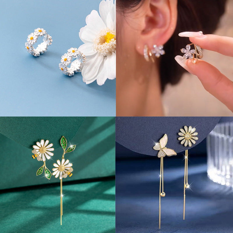 Wholesale flowers bees painted oil leaves asymmetric long tassel earrings