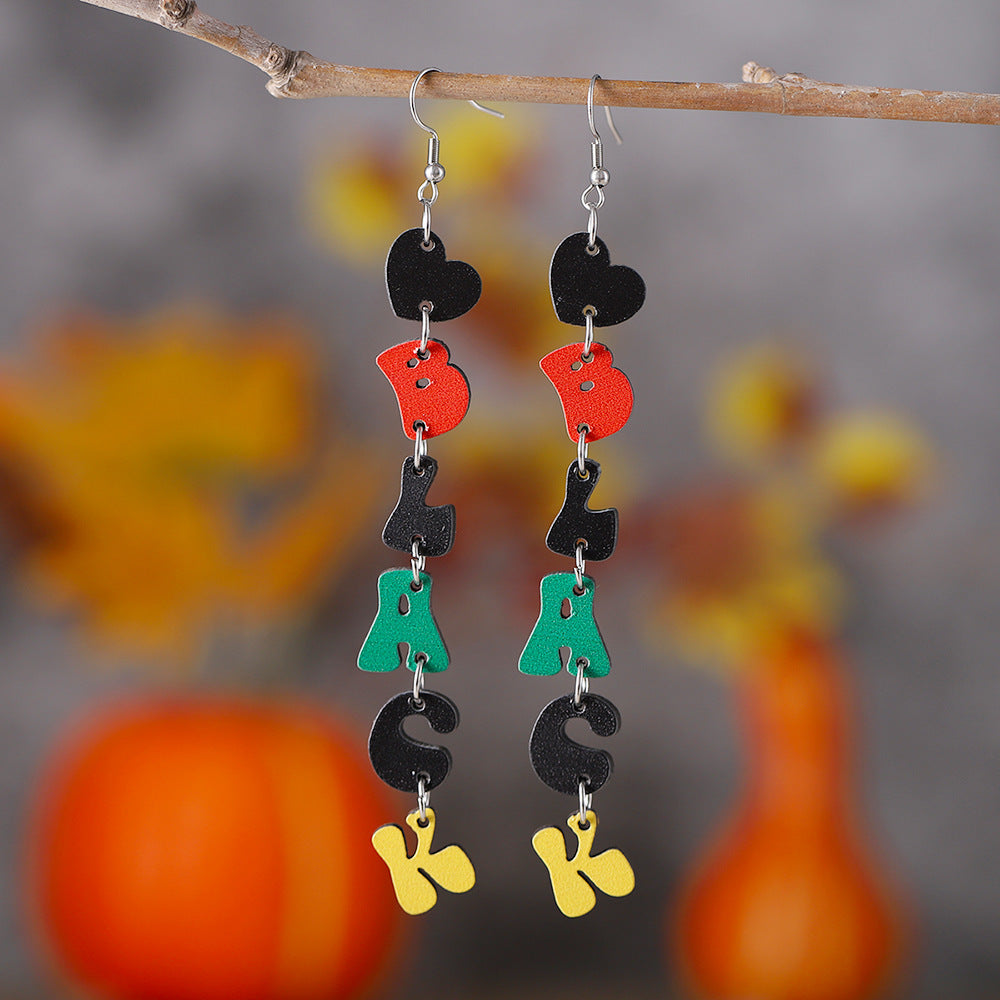 Wholesale June Festival Black Red Yellow Green Love Double-sided Wooden Earrings