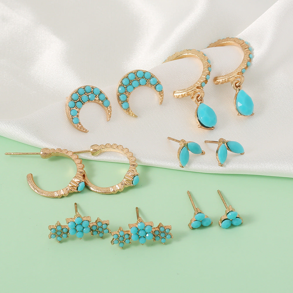 Wholesale metal turquoise star moon leaf geometric female earrings