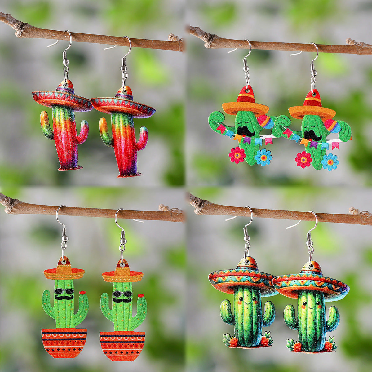 Wholesale Mexico Fifth Festival of the Dead Straw Hat Funny Cactus Pendant Earrings