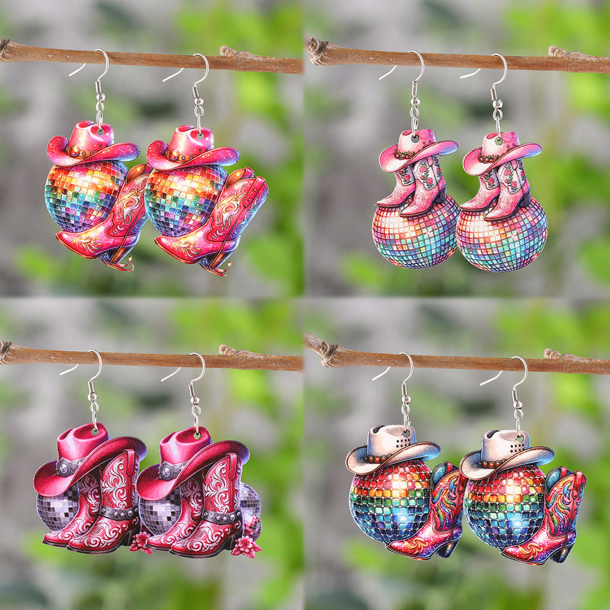 Wholesale Music Festival Western-style Denim Hat Boots Pendant Earrings