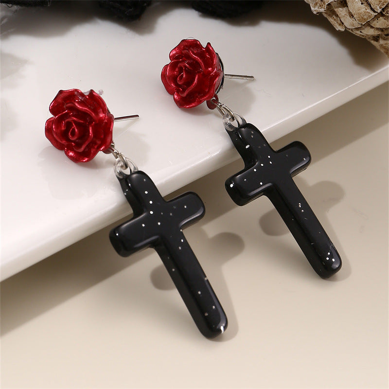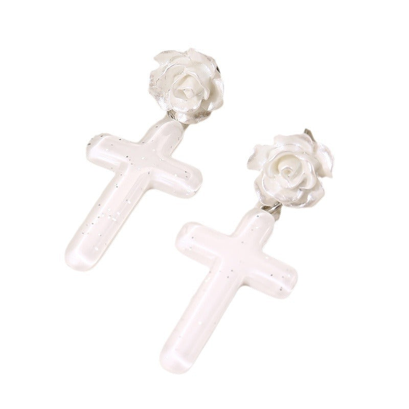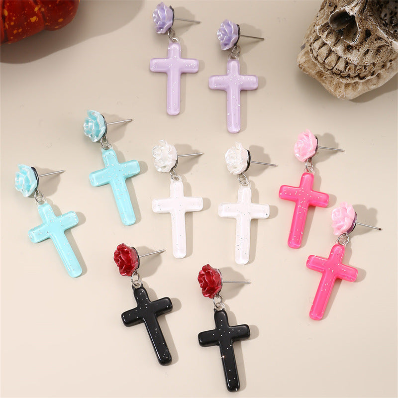Wholesale Rose Cross Resin Pendant Long Earrings
