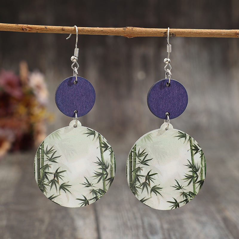 Wholesale Round Printed Bamboo Blue Wood Chip Acrylic Earrings