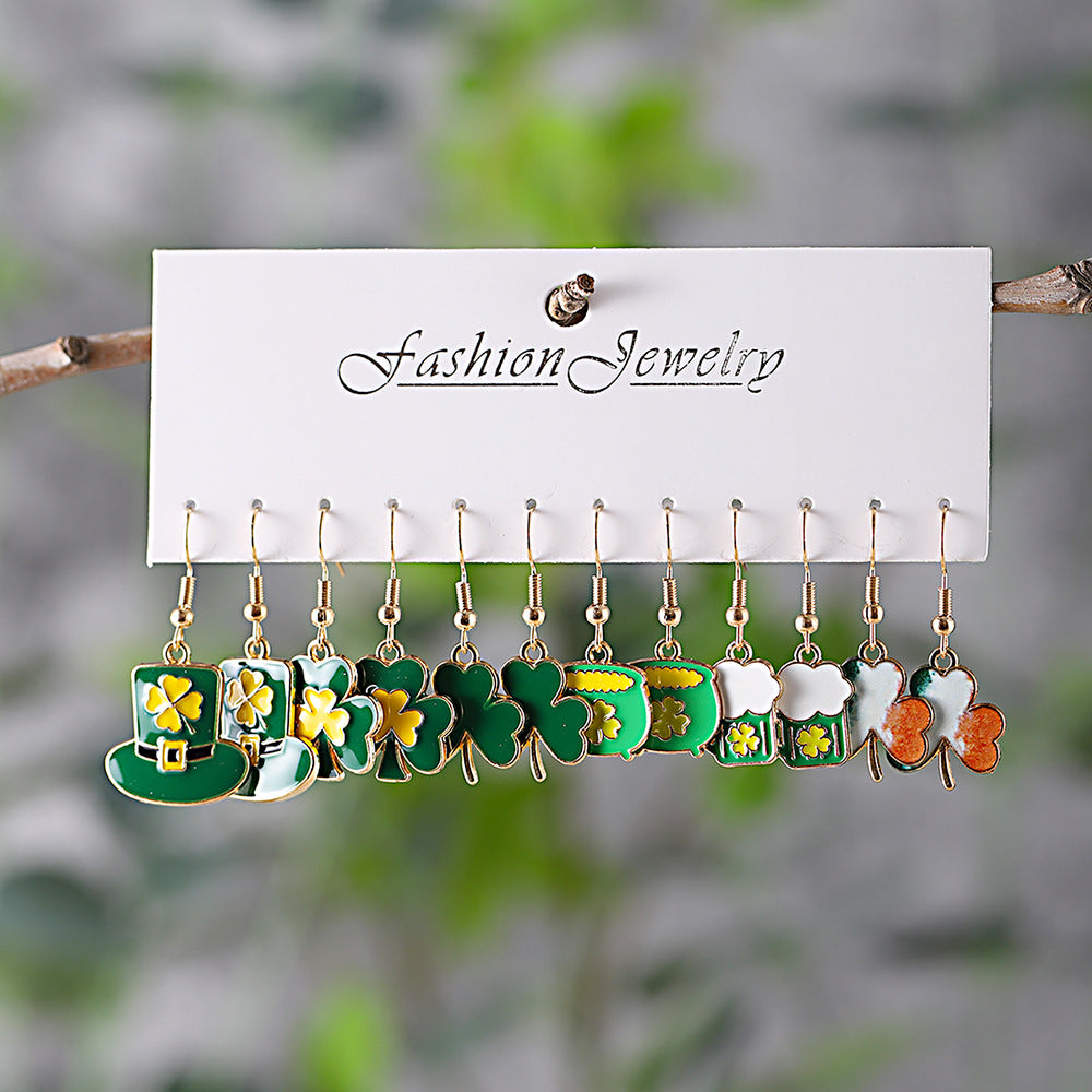 Wholesale St. Patrick's Day Green Clover Hat Green Beer Earrings suit