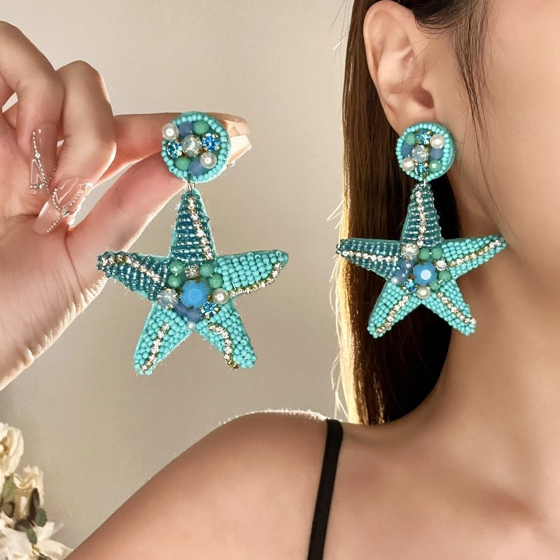 Wholesale Starfish Elegant Pearl Beaded Rhinestone Earrings