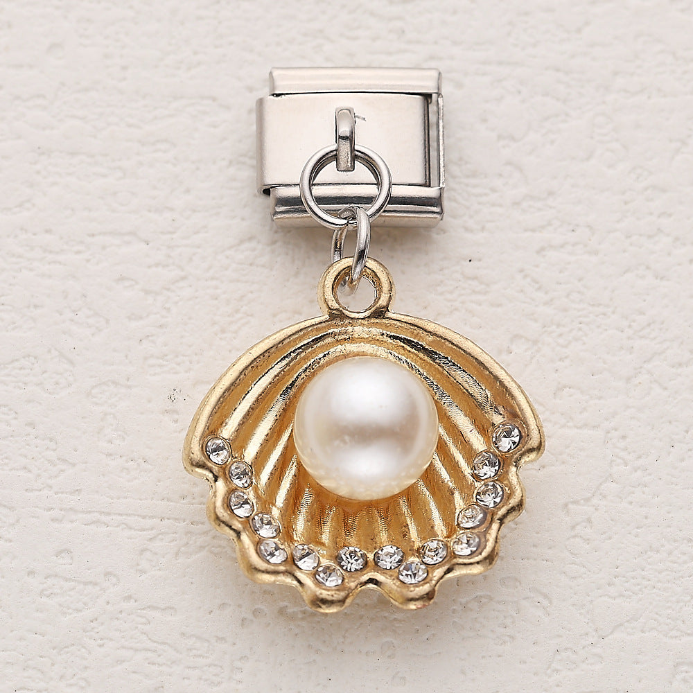 Wholesale 10pcs Italian Charm Bracelet 9mm DIY Splicing Marine Life Shell Stainless Steel Composable Bracelet